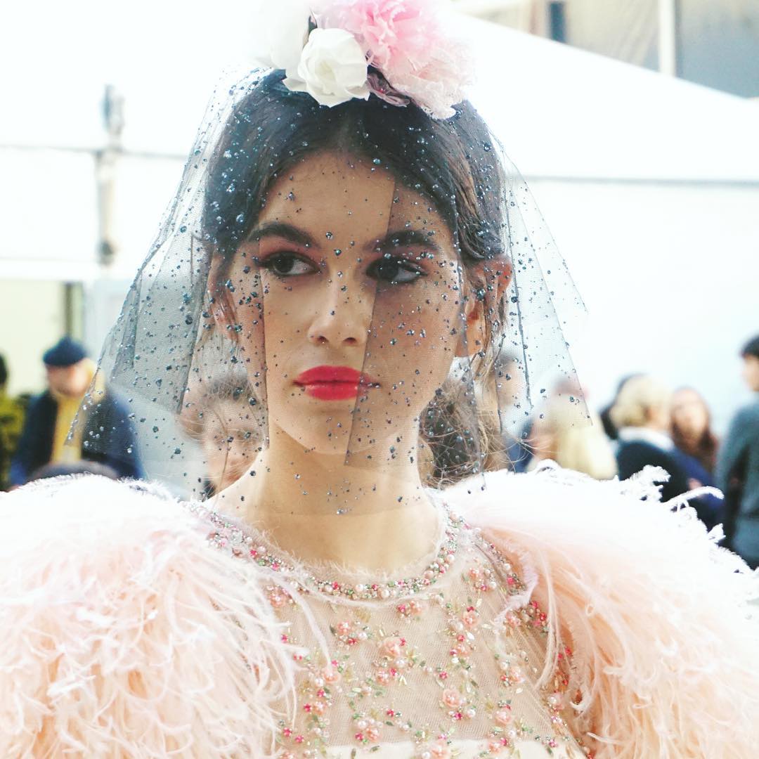 As mdelos, incluindo Kaia Gerber, de 16 anos e filha da supermodelo Cindy Crawford, mostraram botas nos seus looks, algumas com laços, outras com lantejoulas e jóias.