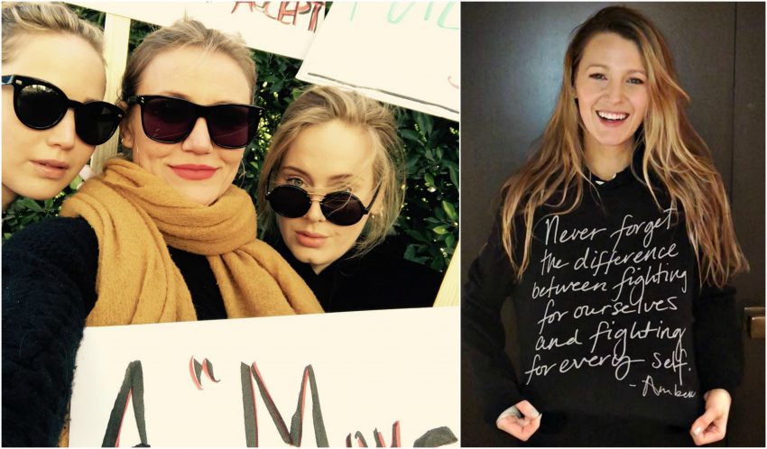 Adele, Cameron Diaz e Jennifer Lawrence estiveram nas ruas. A cantora fez um texto no Instagram sobre o quanto as mulheres a inspiram e o quanto quer ver o poder “às pessoas”.