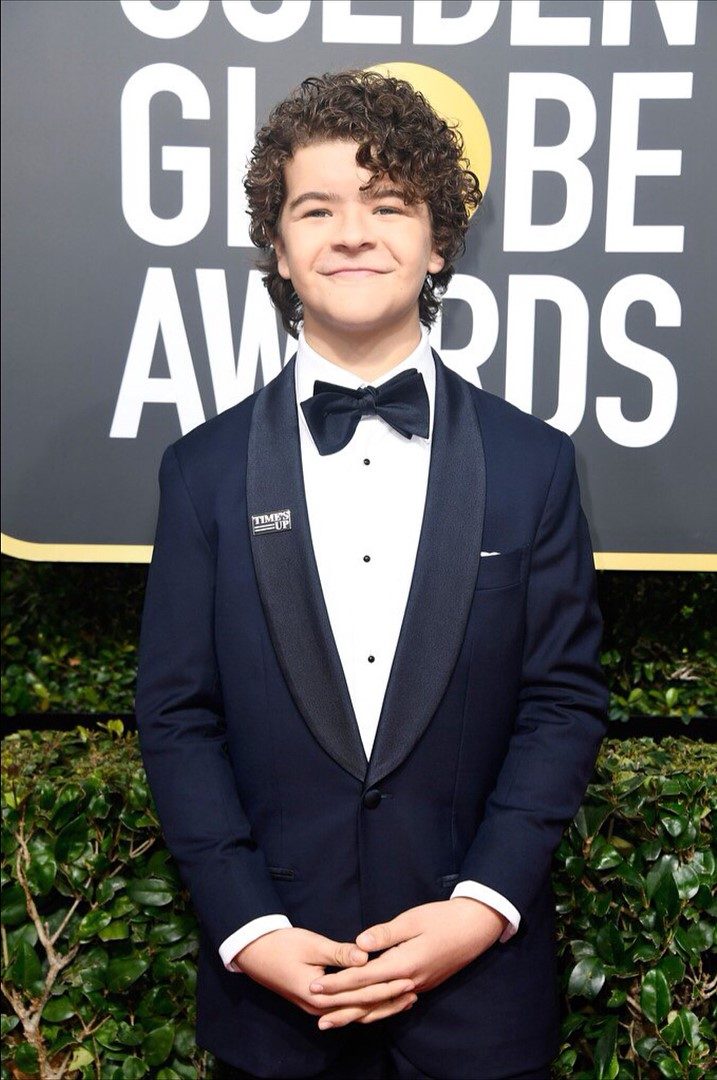 Os homens também vestiram a cor em prol da manifestação, assim como o elenco infanto-juvenil da popular série Stranger Things, que ainda usou um broche com o logotipo do movimento Time’s Up. Veja as fotos: