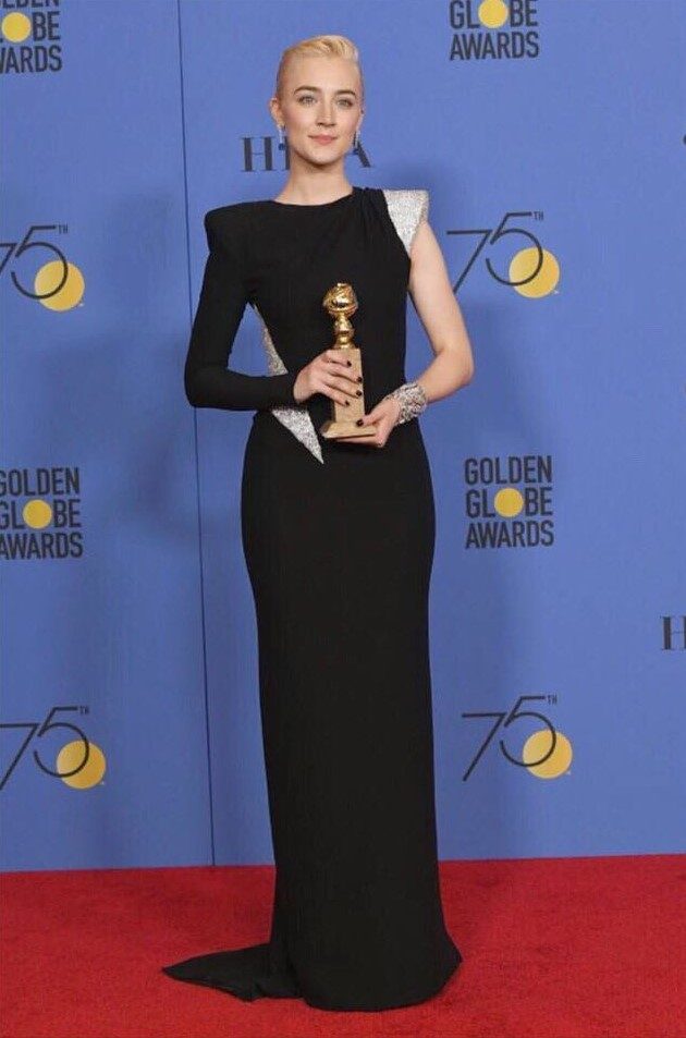 Margot Robbie usou um vestido Gucci em cetim e com flores tridimensionais incrustadas; Angelina Jolie, Nick Jonas, Oprah e Saoirse Ronan optaram por modelos Versace.