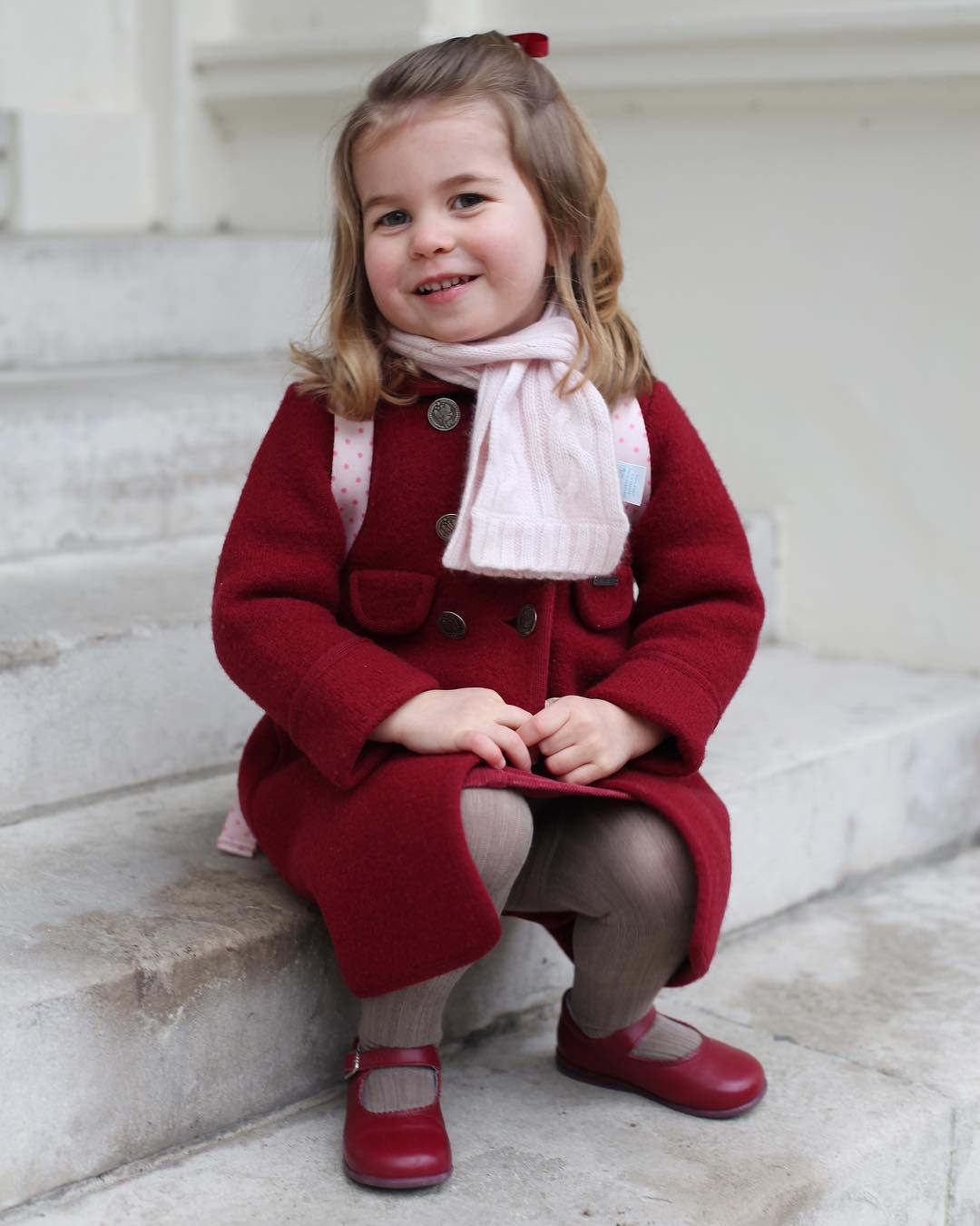 Já esta segunda-feira a atenção foi para outra Middleton. A princesa Charlotte teve o seu primeiro dia de escola em Willcocks, que fica 15 minutos a pé do Palácio de Kensington, e foi a mãe Kate – que na altura em que o primogénito entrou para a creche não o pôde acompanhar por causa dos enjoos severos de grávida – quem tirou as duas fotos oficiais.