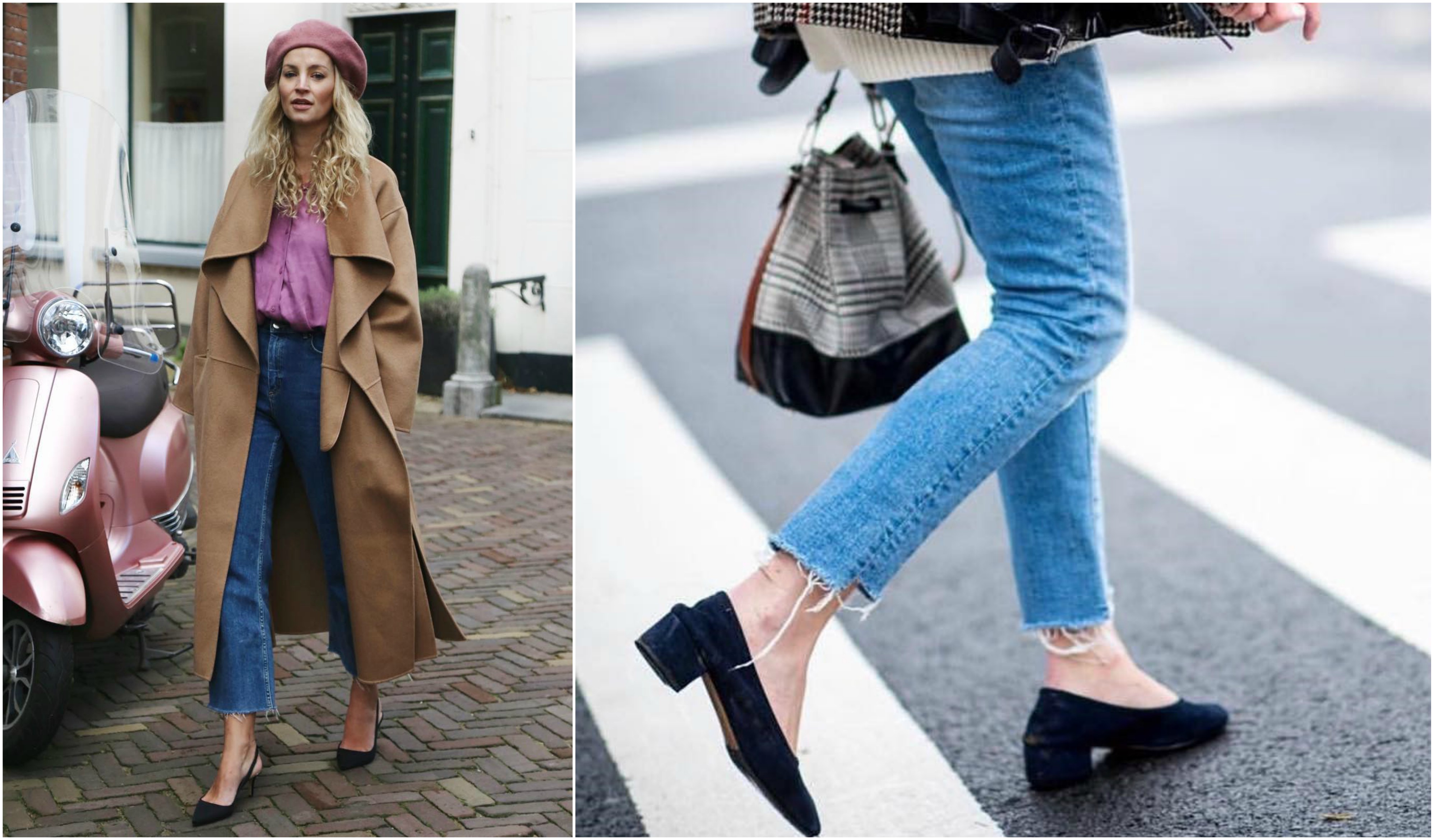 Em termos de calçado, também há várias opções. As calças retas ficam bem com botins, os jeans skinny combinam bem com as botas over the knee (acima do joelho), as calças sem bainha e mais curtas conjugam na perfeição com sapatos rasos e mules, assim como com sapato alto.