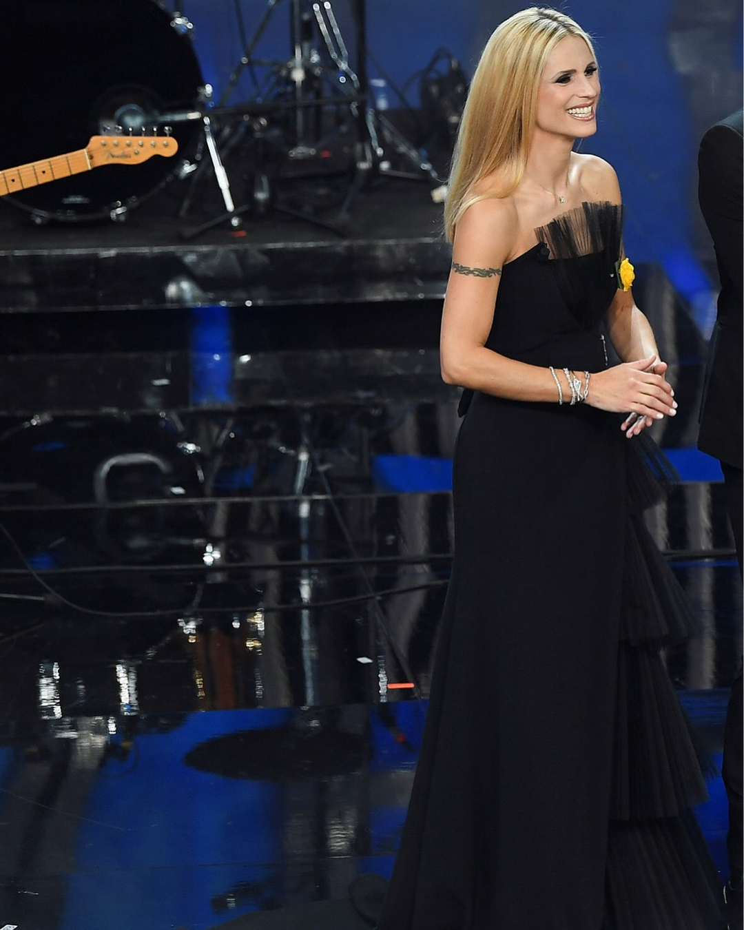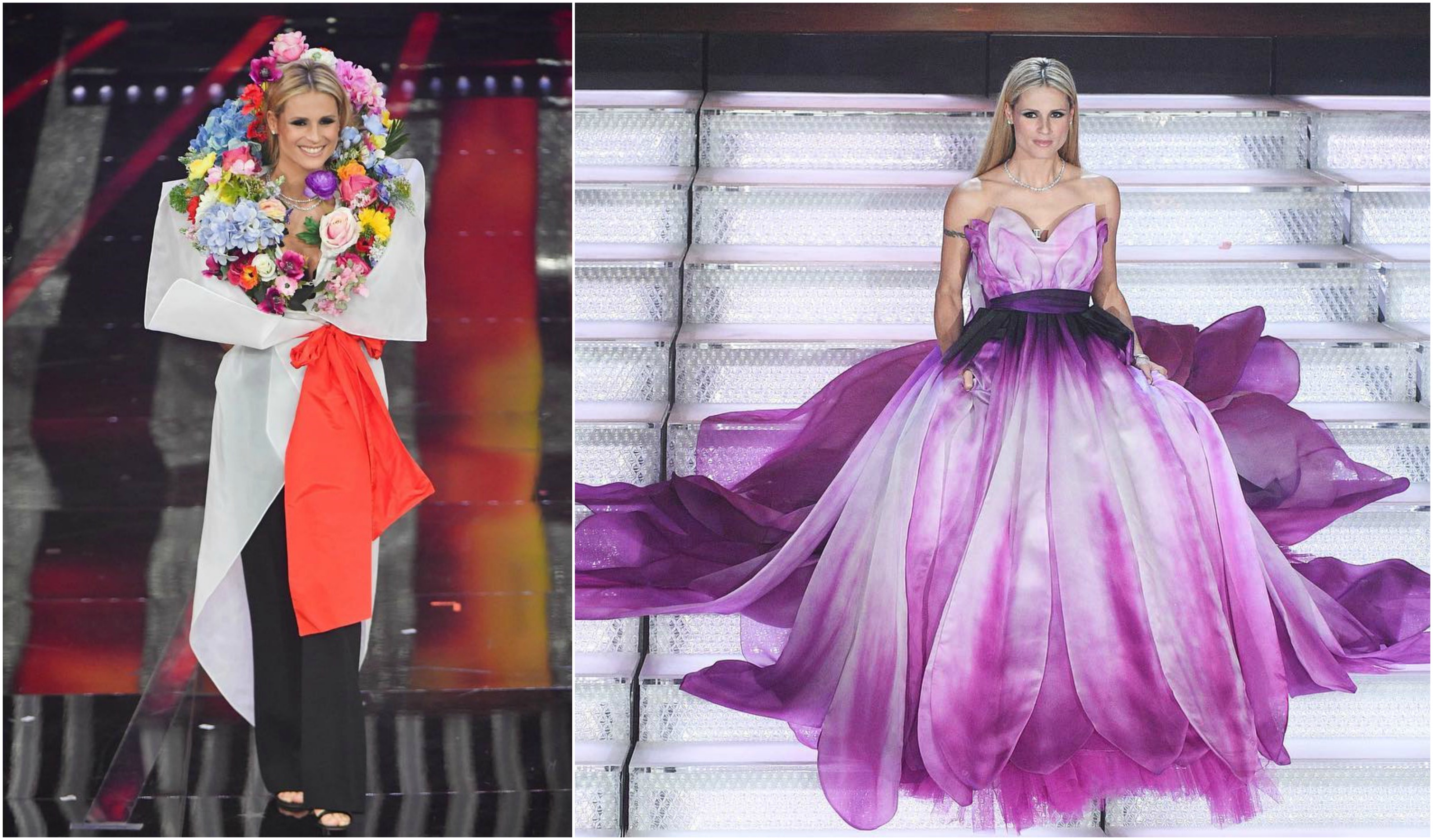 O mais extravagante, que até mereceu piadas por parte dos seus co-apresentadores Claudio Baglioni e Pierfrancesco Favino, foi sem dúvida o vestido bouquet Moschino. Basicamente, uma criação de Jeremy Scott que deixava Michelle embrulhada num ramo de flores.