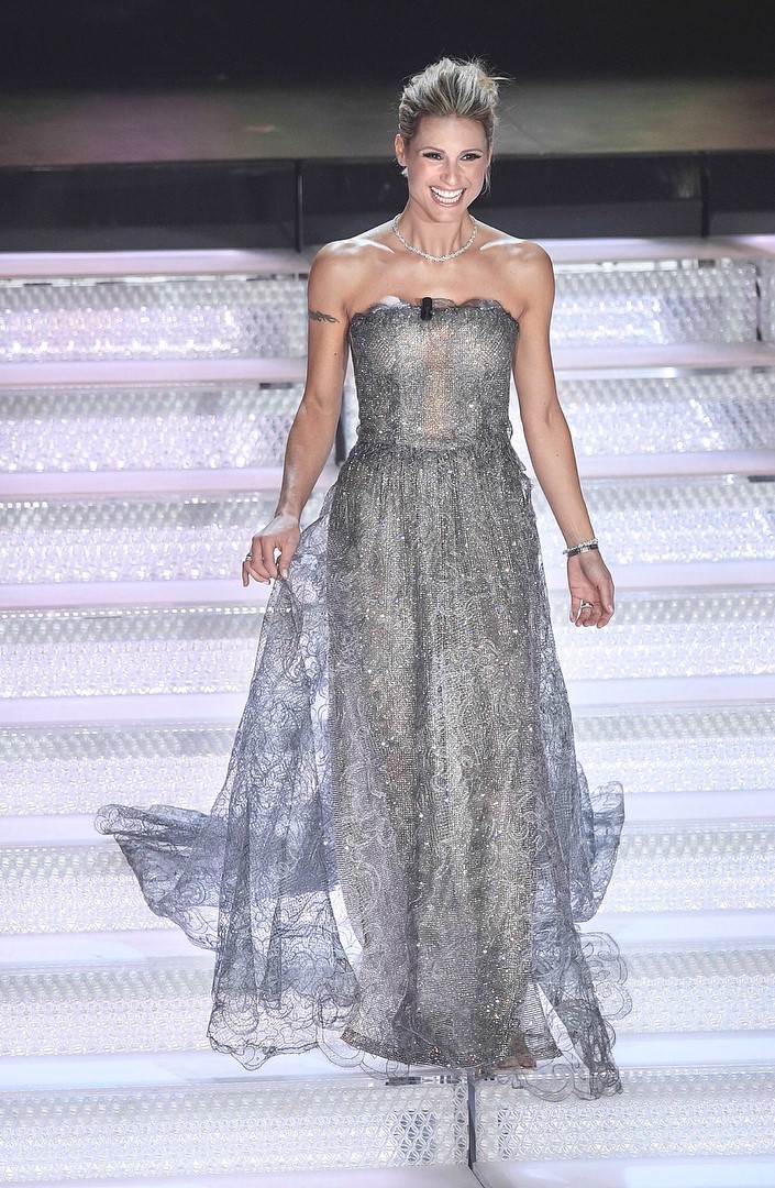 A artista suíça, naturalizada italiana, que já foi casada com Eros Ramazzotti, deslumbrou o público com os vários looks fashion com que pisou o palco.
