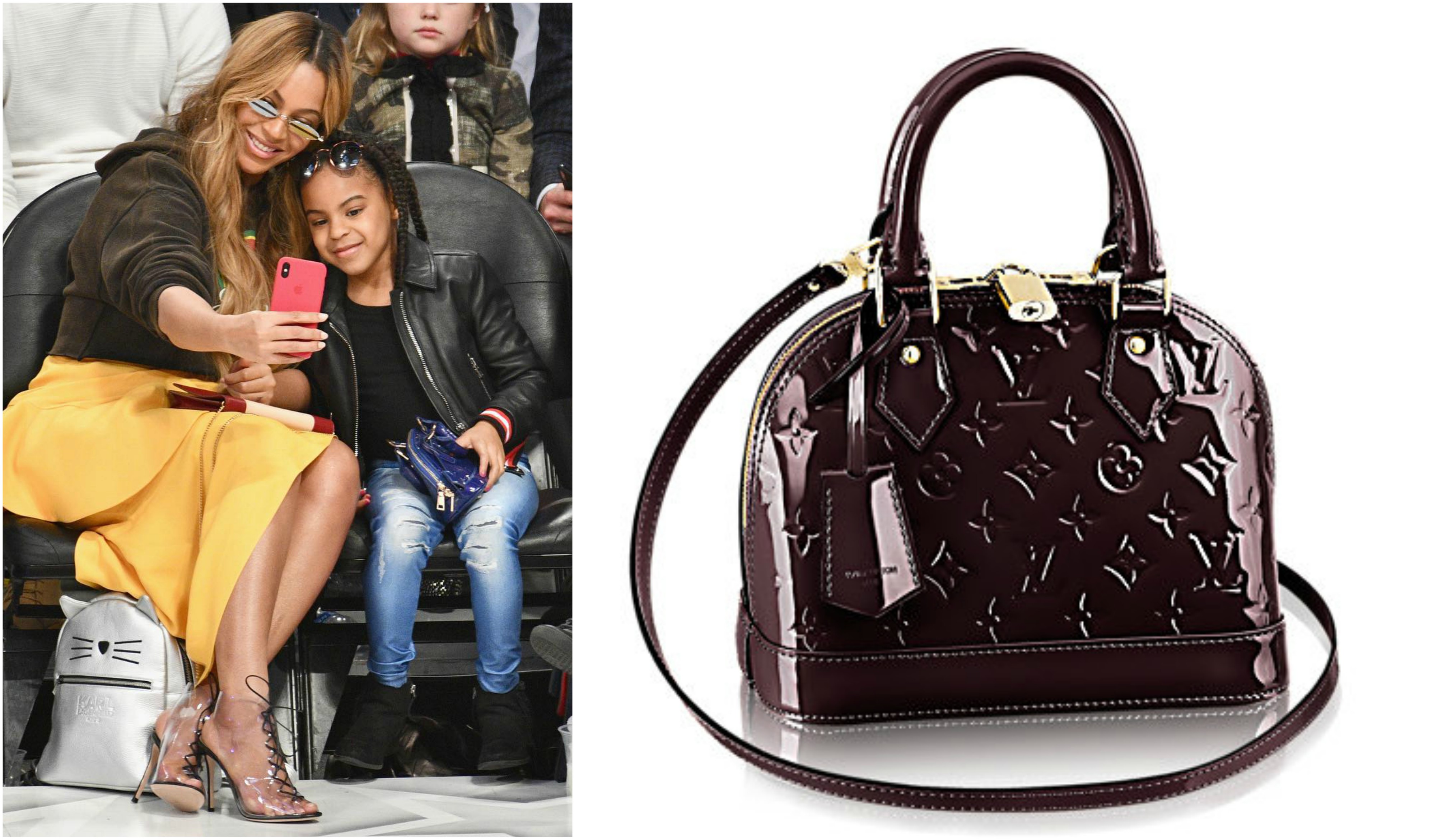 A menina, de seis anos, levou uma carteira Louis Vuitton de 1700 euros. Trata-se do modelo Alma BB e tem o monograma da marca em verniz.