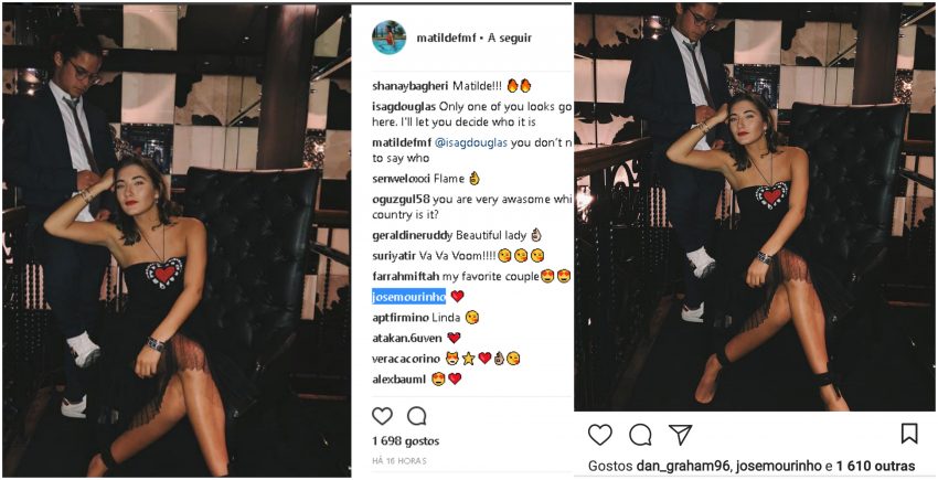 O look arrojado e elegante que a filha de José Mourinho apresentou na noite de aniversário do irmão colocou-a no foco de todos. Confiante e segura de si, Matilde também percebeu que o seu conjunto arrasou, ao ponto de ter partilhado uma dessas imagens na rede social Instagram. Além de ter deixado o seu ‘gosto’ na publicação da filha, o treinador ainda comentou com um coração… vermelho, que é a cor do clube que representa.