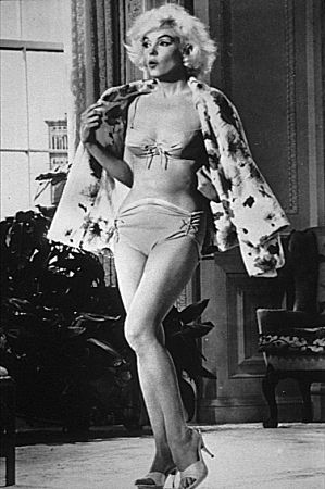 Para uma sequência do filme, Marilyn Monroe nadava apenas com um biquíni cor da pele, insinuando estar nua. Após filmar a cena, teria mesmo removido a parte de cima para protagonizar as fotos publicitárias para o filme, como conta o IMDB.