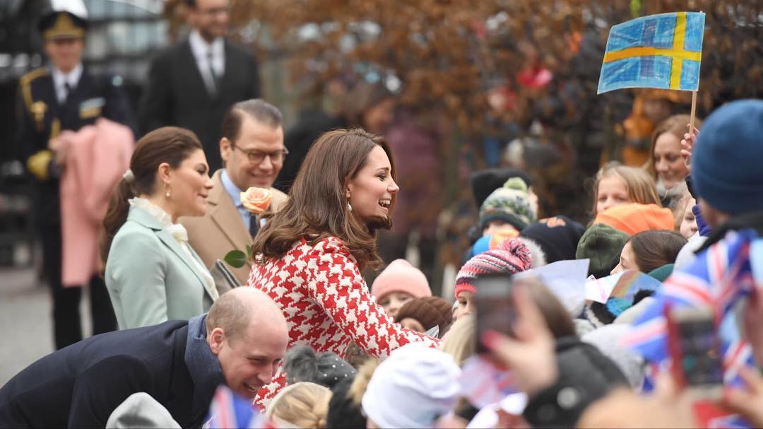 Bastou a duquesa de Cambridge surgir, no segundo dia da sua visita oficial à Suécia, com um casaco com um estampado pied-de-poule vermelho de Catherine Walker para logo a internet se inundar de imagens antigas da princesa Diana.