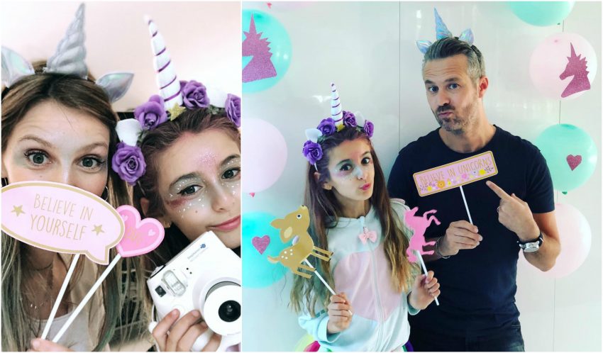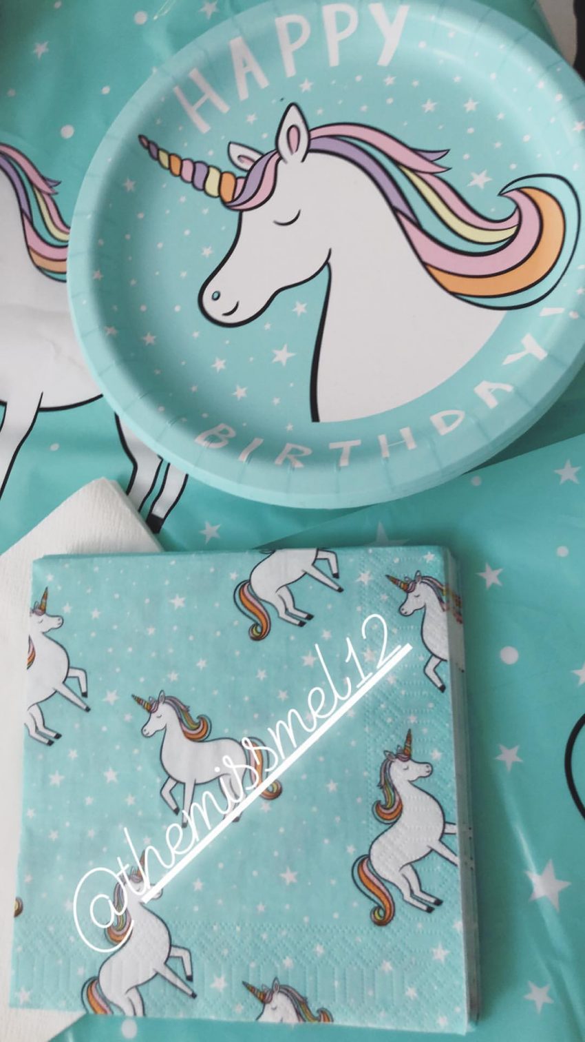 Mel teve um bolo de unicórnio, jogos de colocar o chifre ao unicórnio de papel e também muita música.