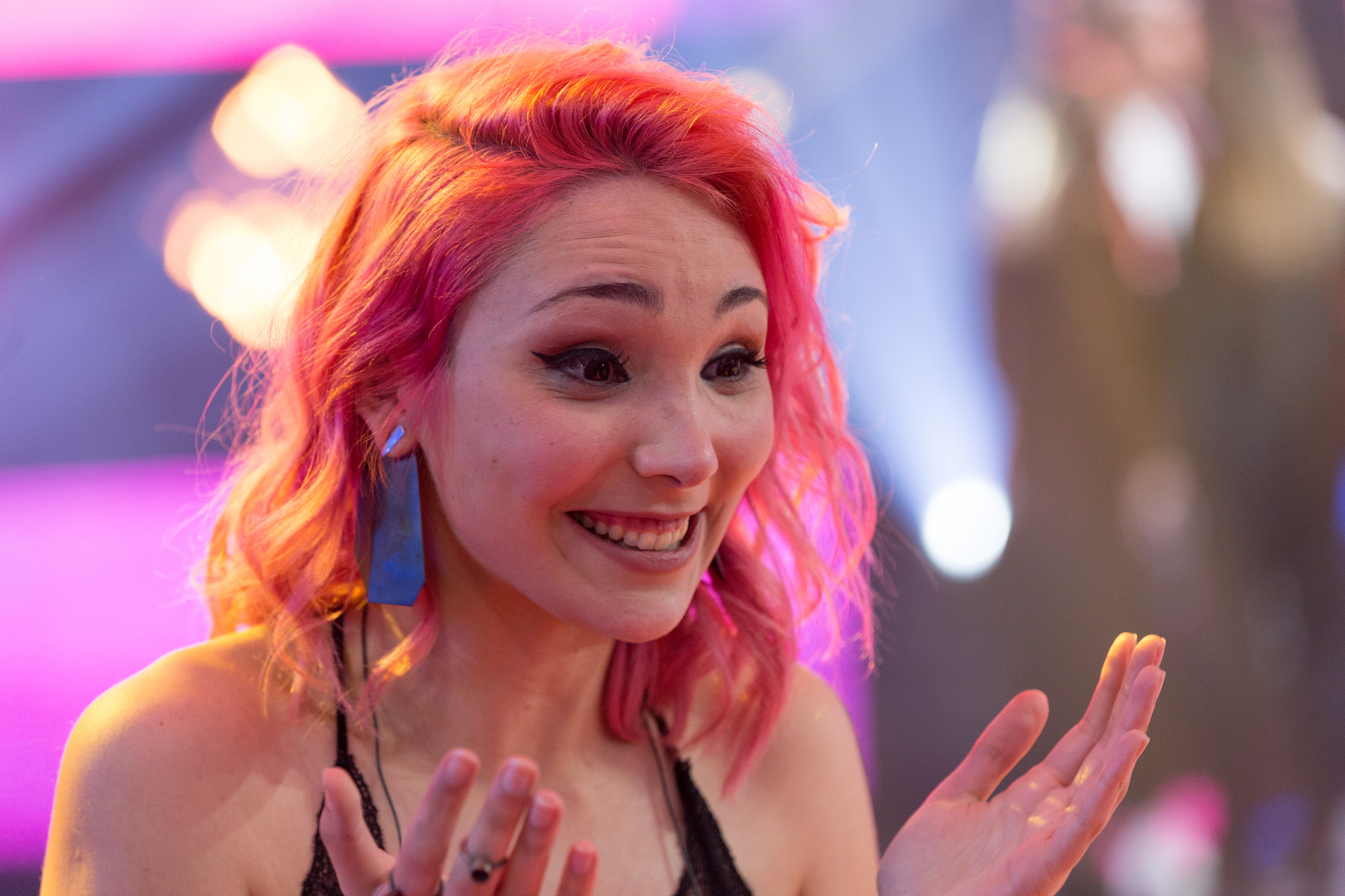 O cabelo pintado de cor-de-rosa é, sem dúvida, a marca da jovem cantora que, nas duas etapas do festival assumiu a cor ainda com mais intensidade. E, após a vitória, confessou, em jeito de desafio que “adorava ver na Eurovisão uma plateia de perucas cor-de-rosa”, a 12 de maio, no Altice Arena, em Lisboa.