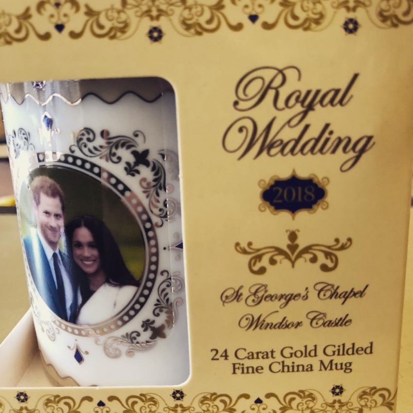 No centro das peças estão as iniciais do Príncipe Harry e de Meghan Markle em letras douradas, ligadas com um laço branco e com a coroa no topo. Há ainda espaço para imortalizar o local da boda: Capela de St. George no Castelo de Windsor.