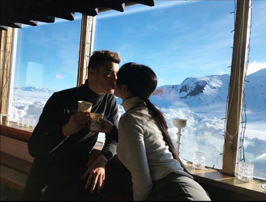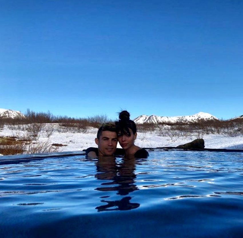 “Dia incrível”, descreveu o futebolista na imagem que partilhou no Instagram, na qual apareceu com a mãe da filha mais nova, Alana Martina, numa piscina aquecida ao ar livro no meio da montanha para onde se deslocaram de helicóptero.