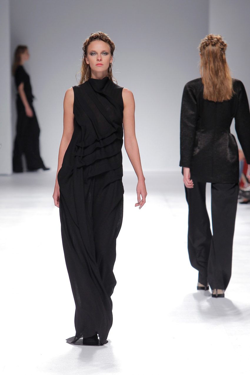 E foi assim, com looks integralmente pretos, que se fez a coleção outono/inverno do estilista. As lãs, sedas, algodão e misturas foram os materiais usados.