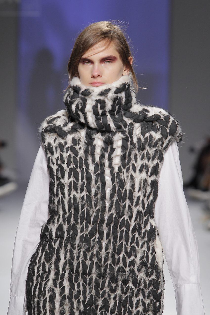 Num outro patamar, Inês arriscou novas técnicas e introduziu estampados numa parceria com a escritora e letrista Regina Guimarães. Destaque ainda para as maxi lãs executadas à mão e pintadas pela própria criadora.