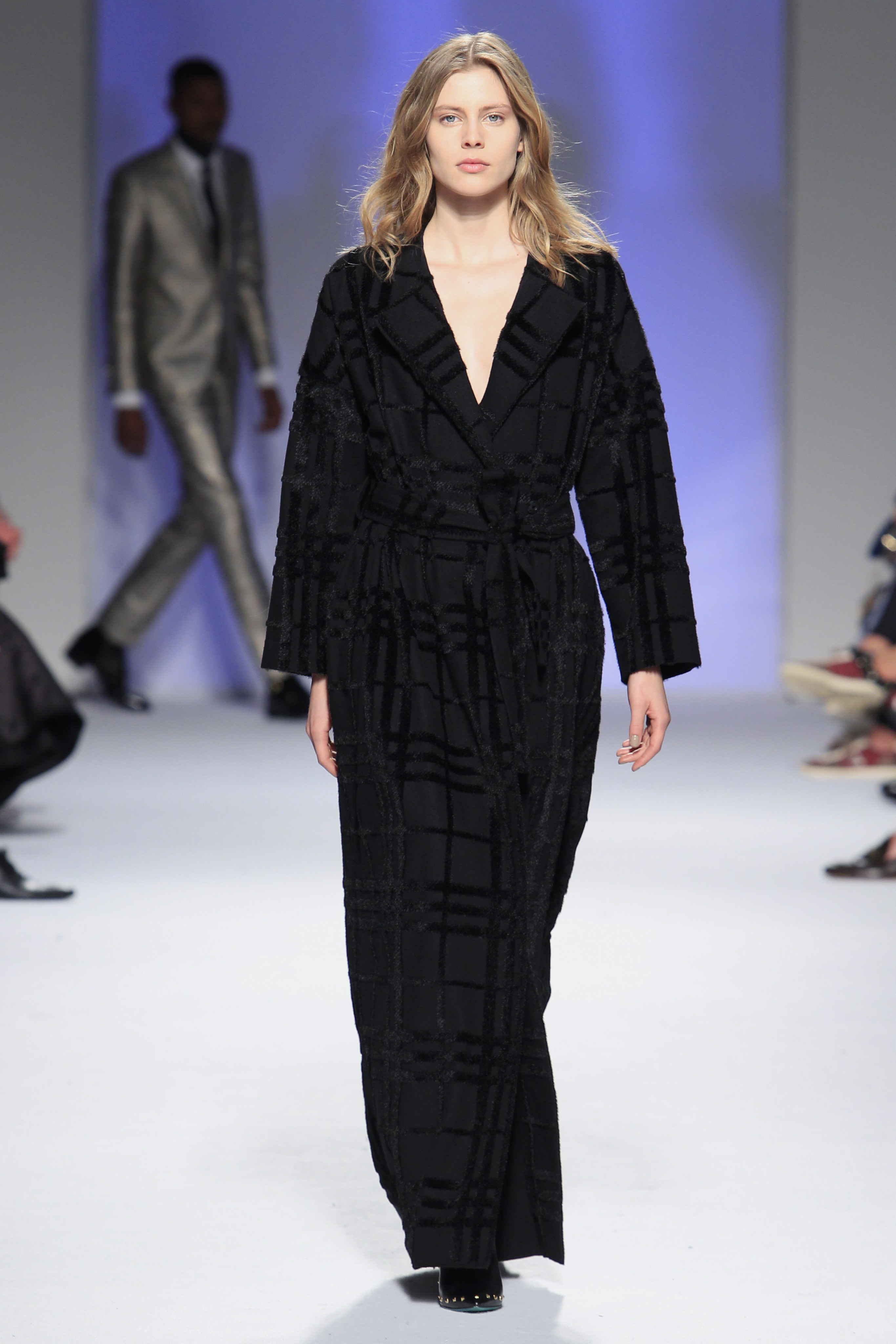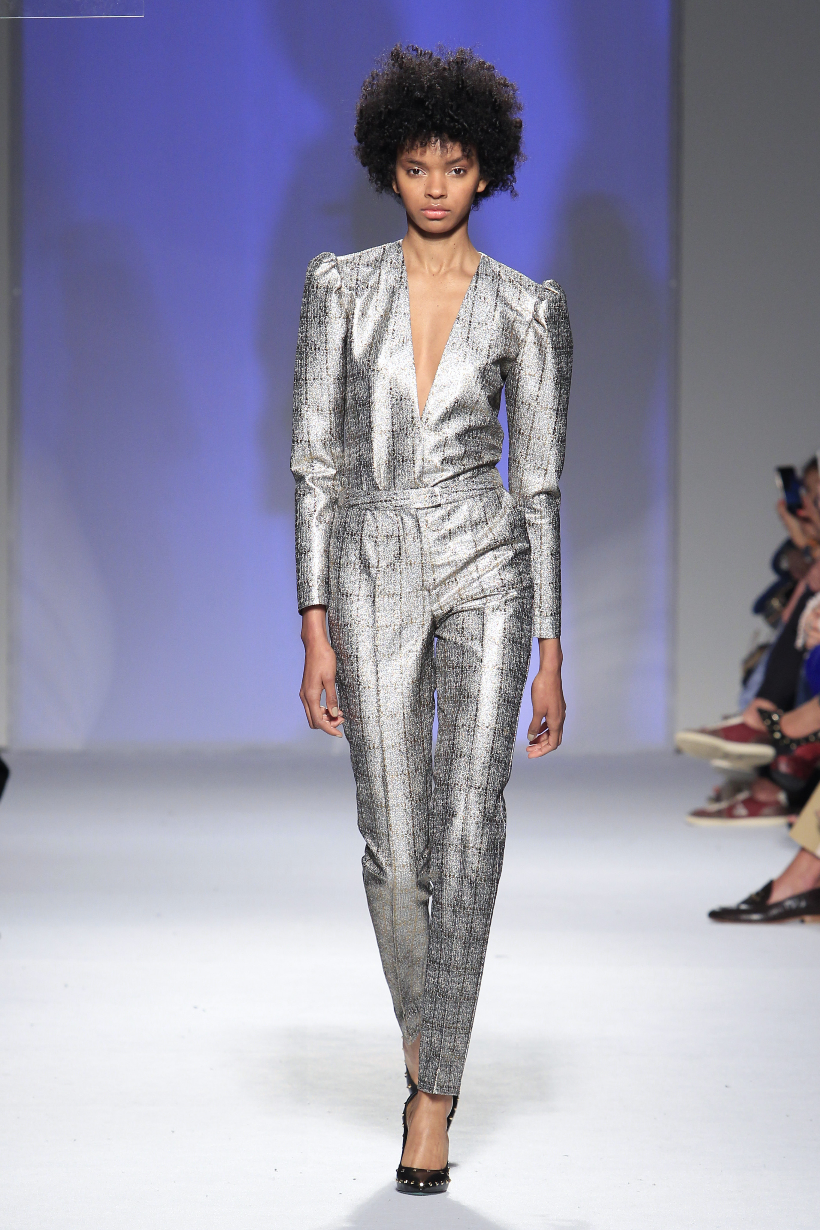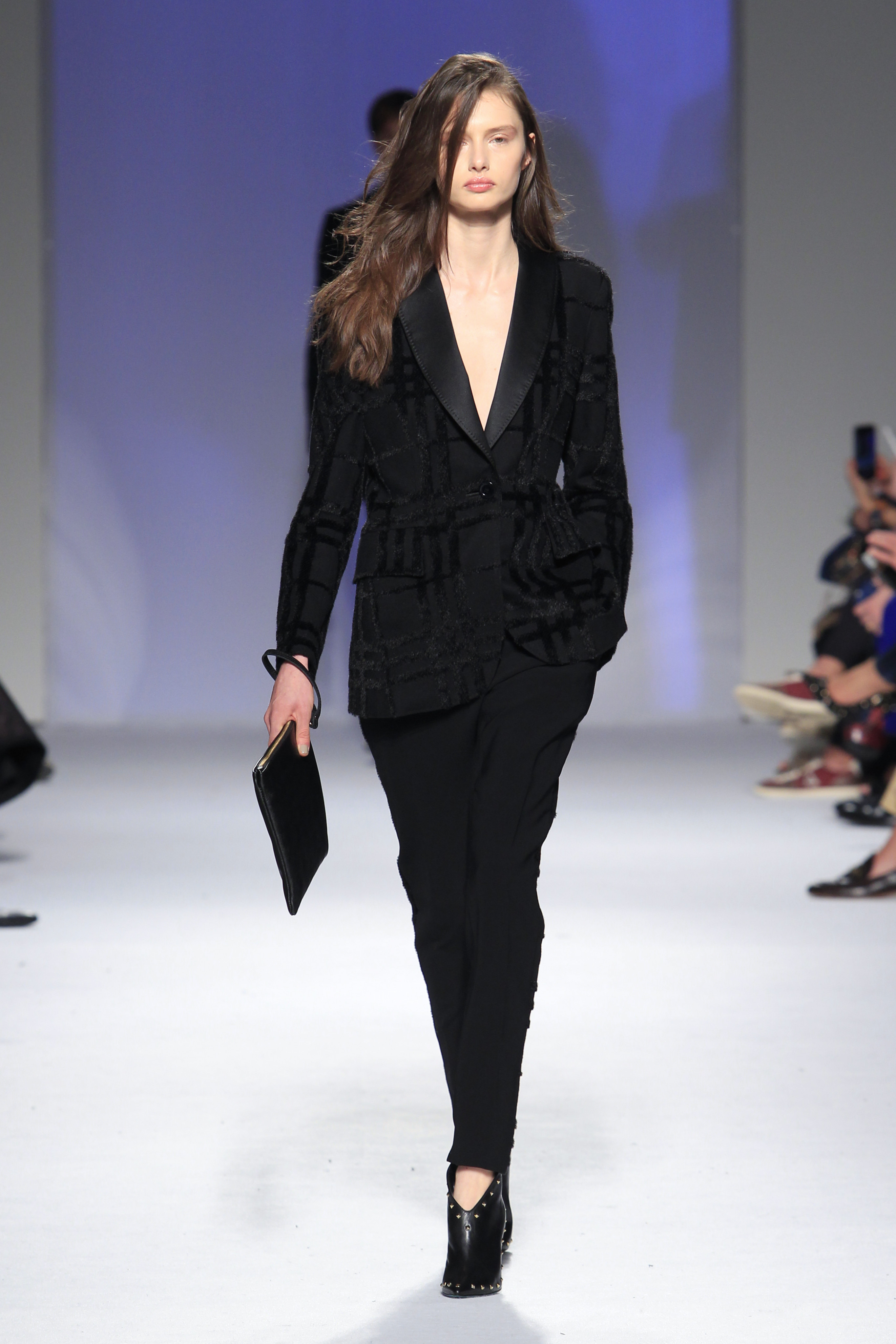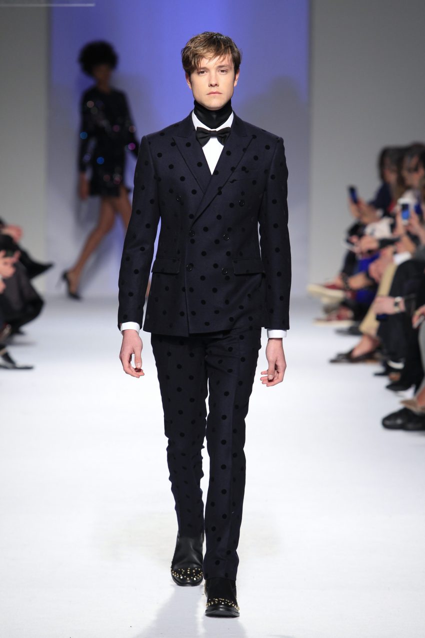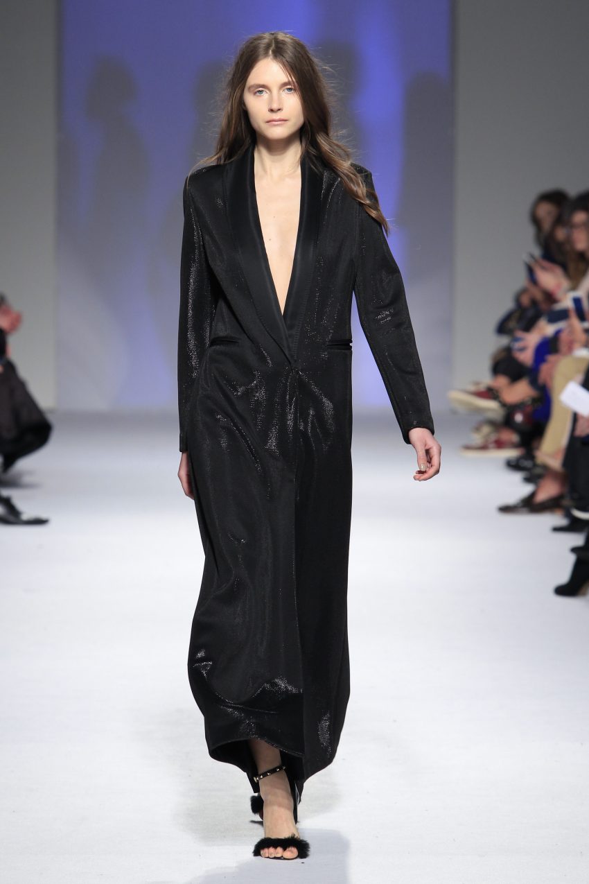 O rock & roll serviu a banda sonora e de inspiração, somando ainda mais atitude às criações que se sucederam entre silhuetas esguias e clássicas com formas mais volumosas e peças sobrepostas.