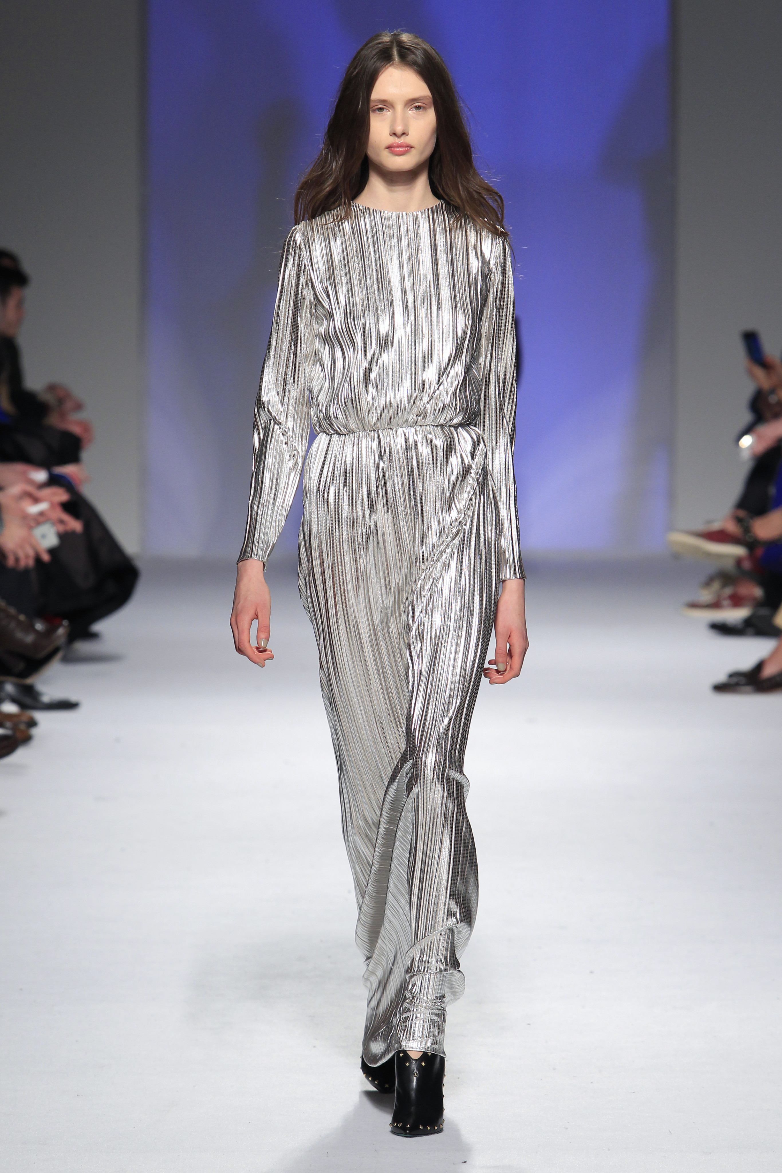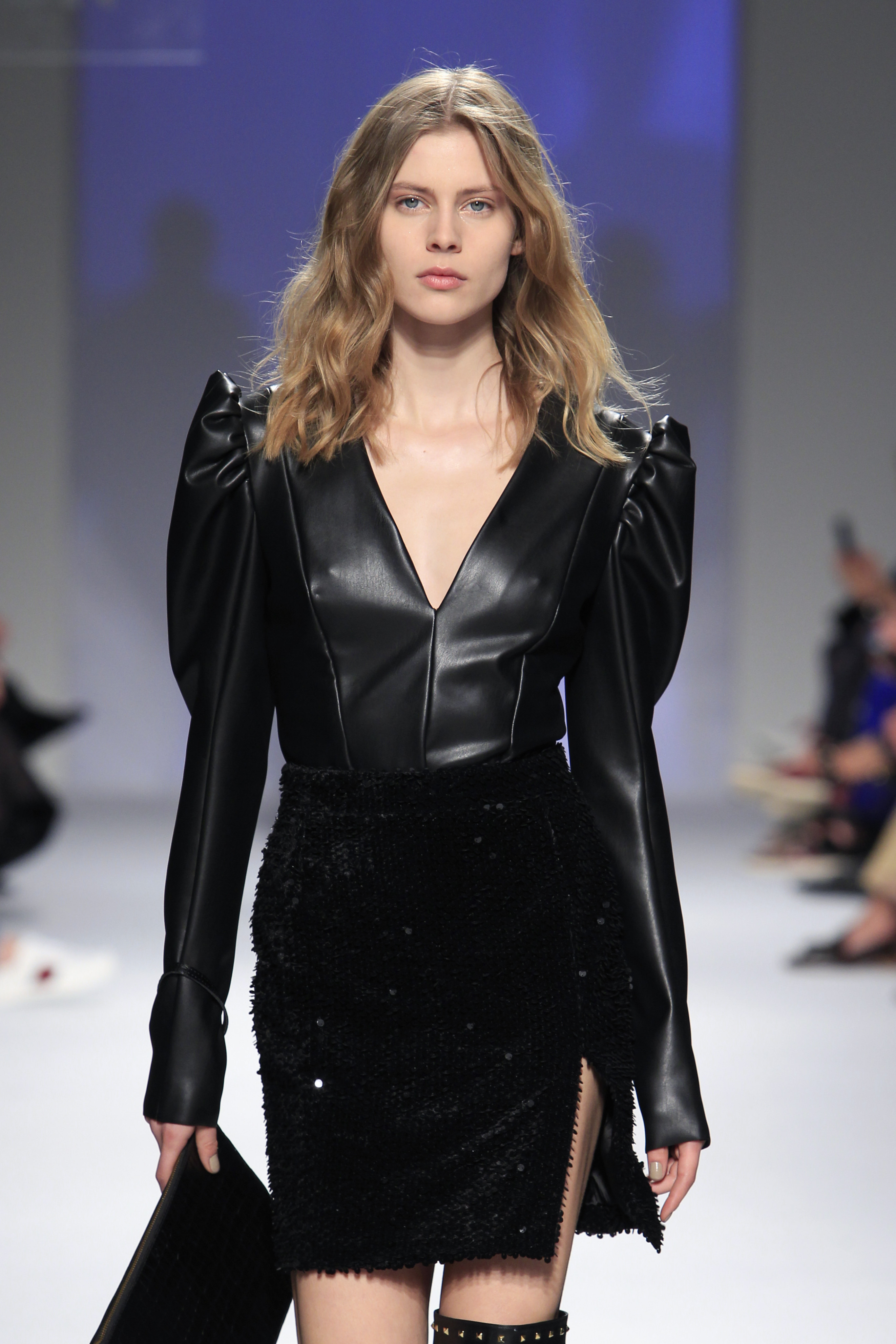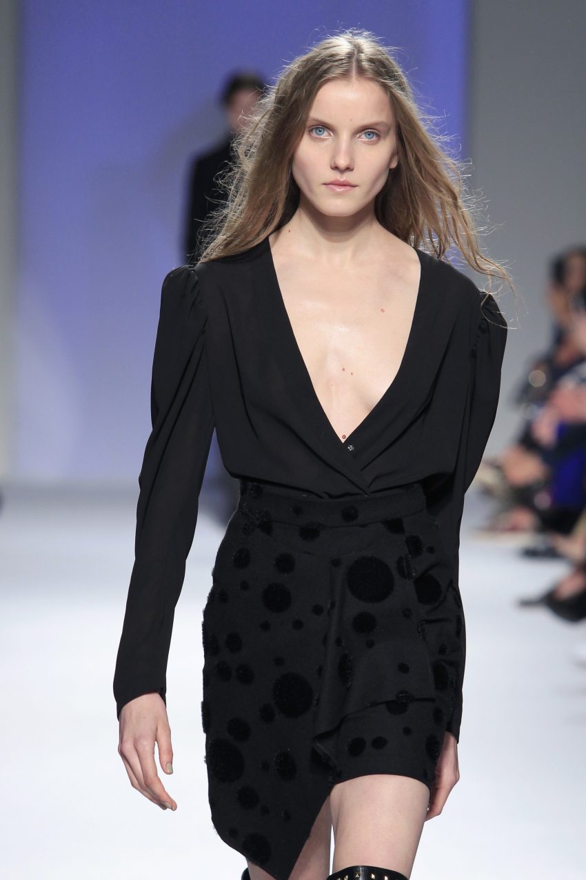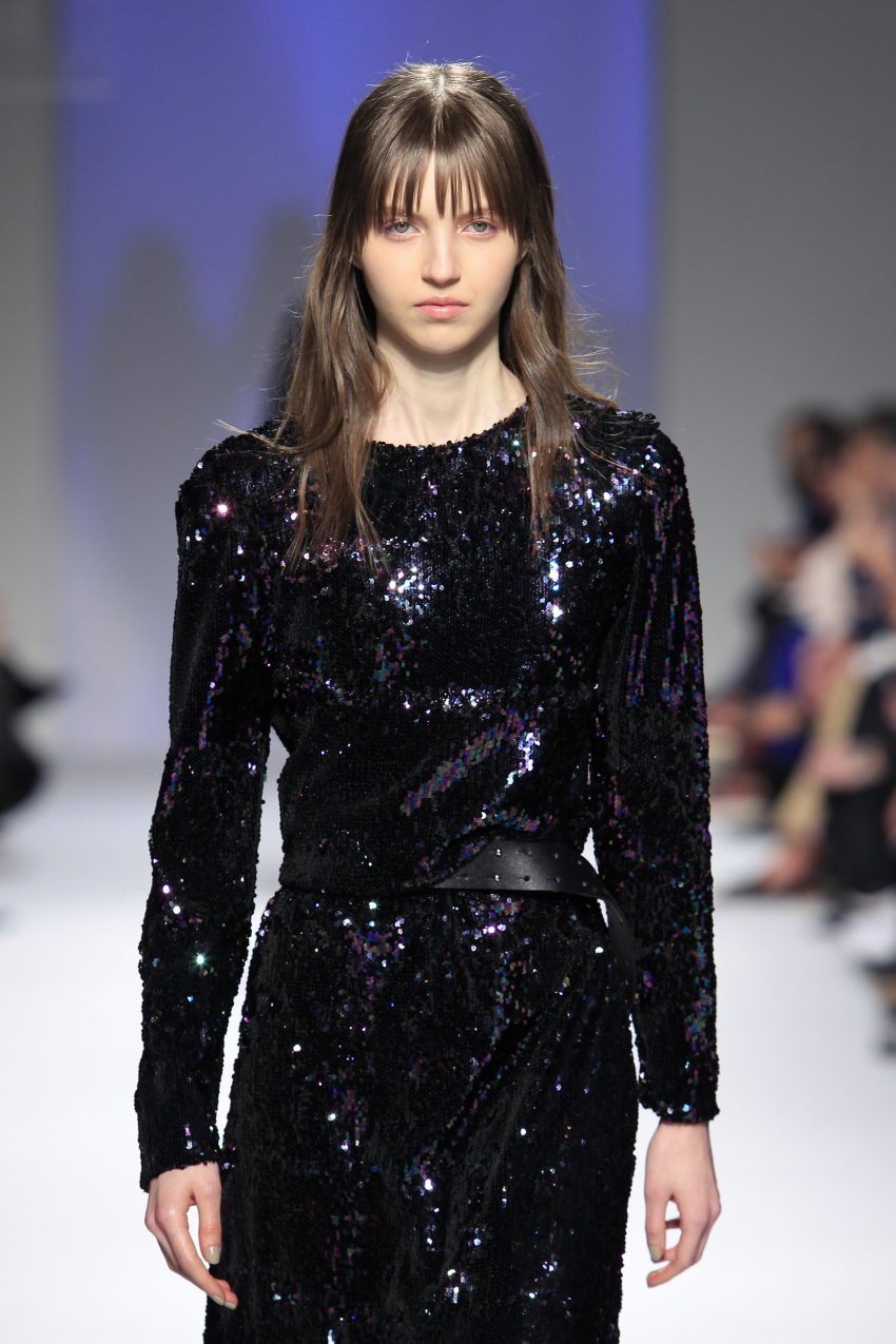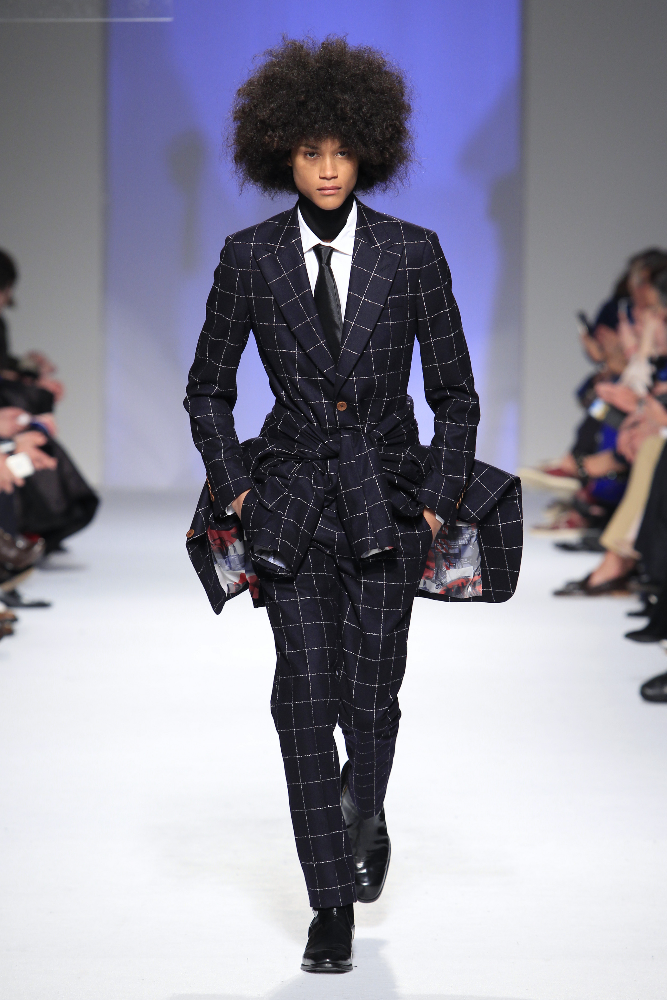 O rock & roll serviu a banda sonora e de inspiração, somando ainda mais atitude às criações que se sucederam entre silhuetas esguias e clássicas com formas mais volumosas e peças sobrepostas.