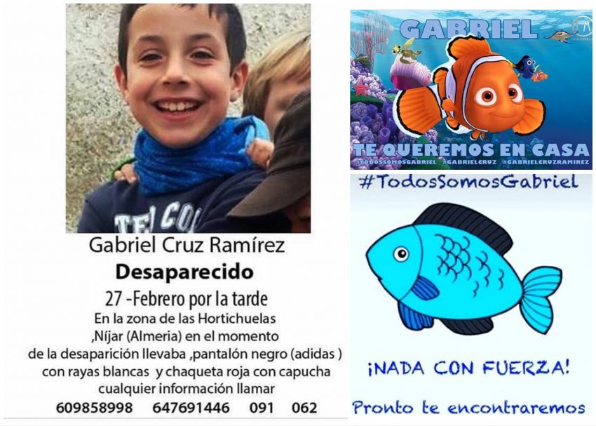 Gabriel Cruz, de 8 anos, desapareceu dos olhos da avó paterna, Carmen, em Las Hortichuelas, uma localidade no município de Níjar, no sul de Espanha, a 27 de fevereiro. Ia ter com os primos, mas nunca mais apareceu, gerando uma onda de solidariedade para com os pais que não desistem de encontrar o seu menino, à qual a jornalista espanhola também se associa.