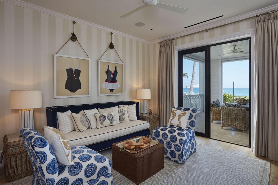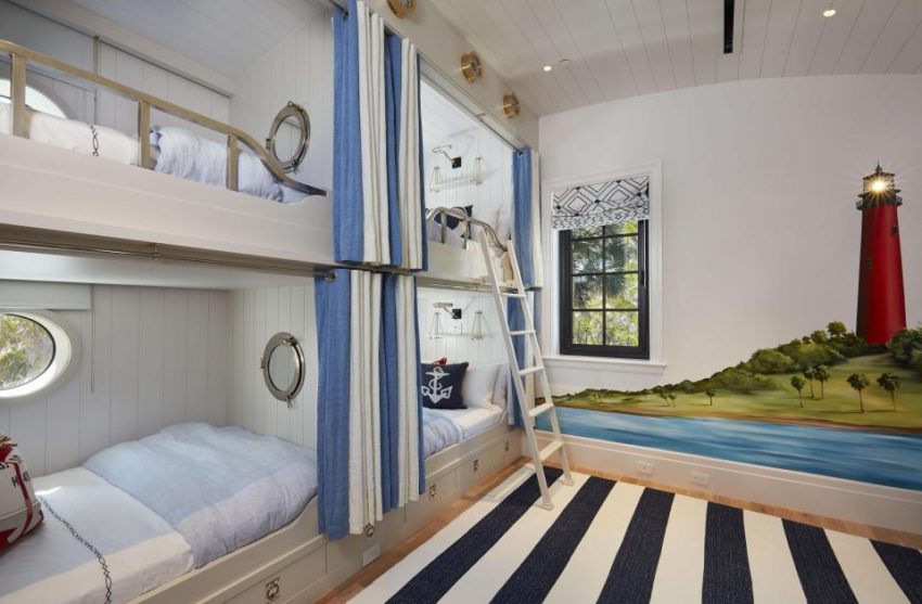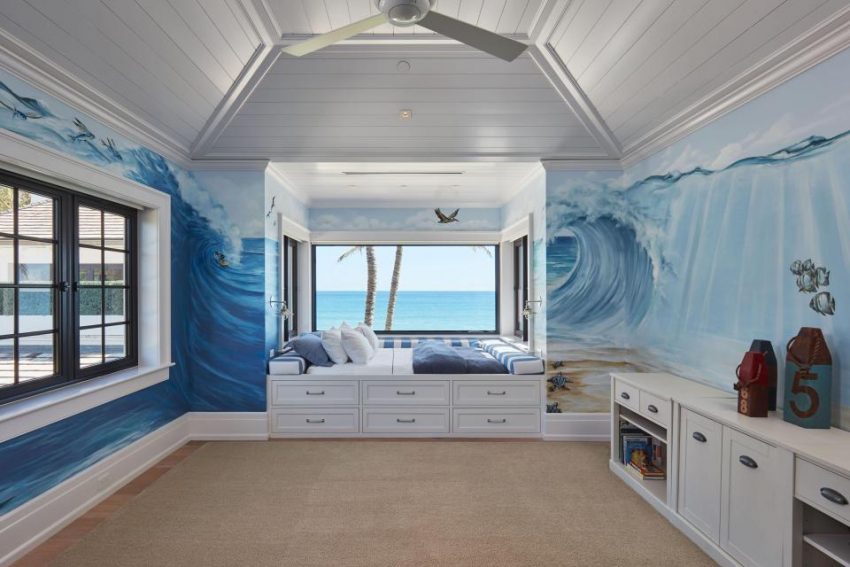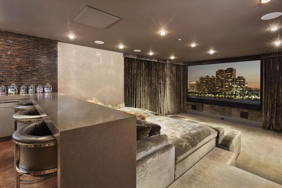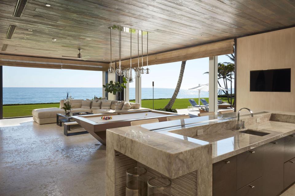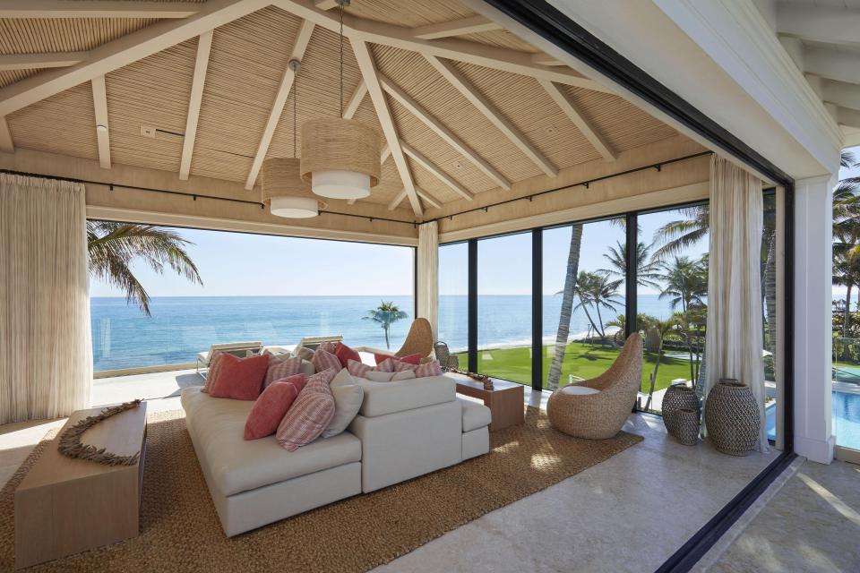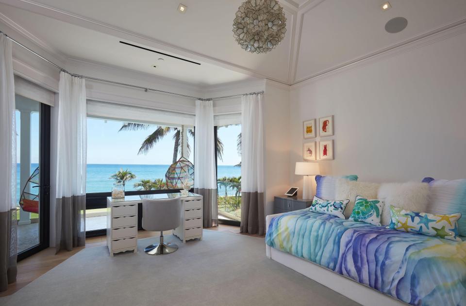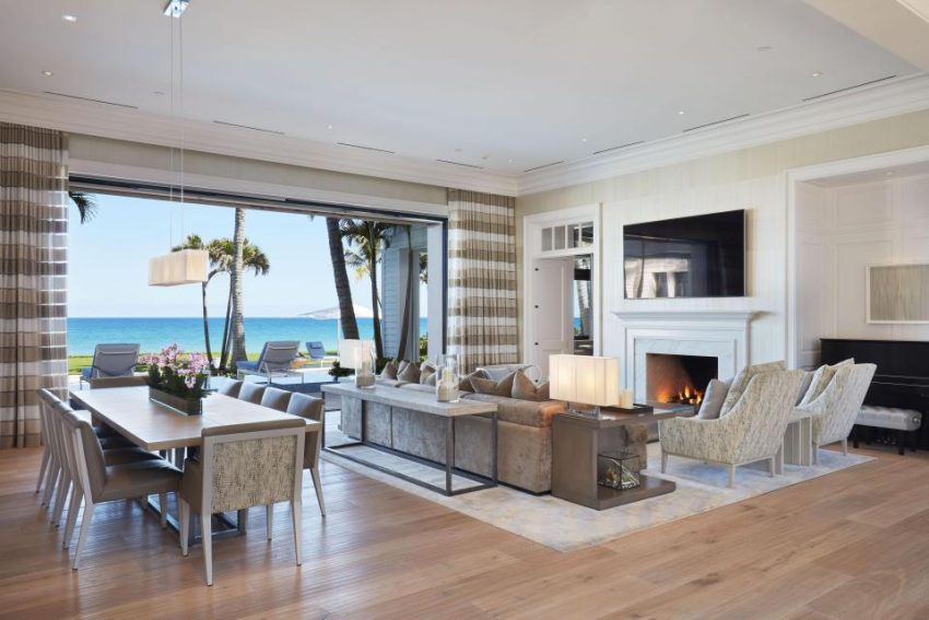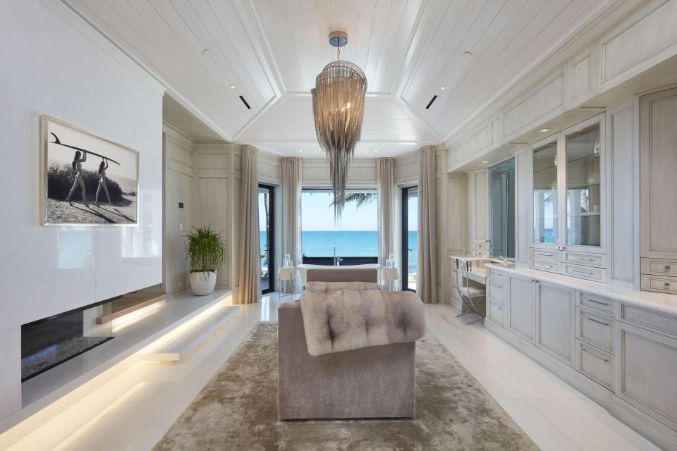 Os interiores foram decorados por Angela Reynolds, que também projetou a casa de Celine Dion na ilha de Jupiter.