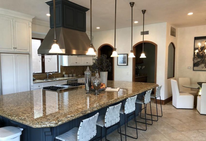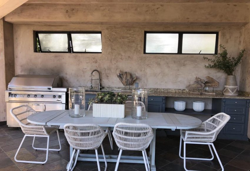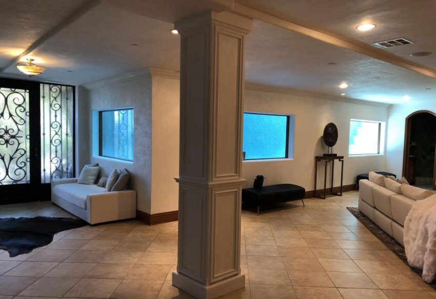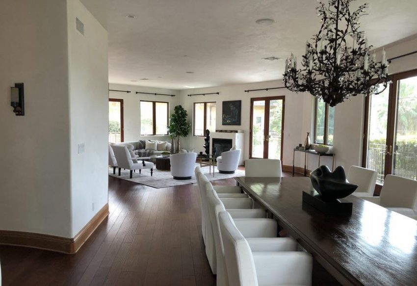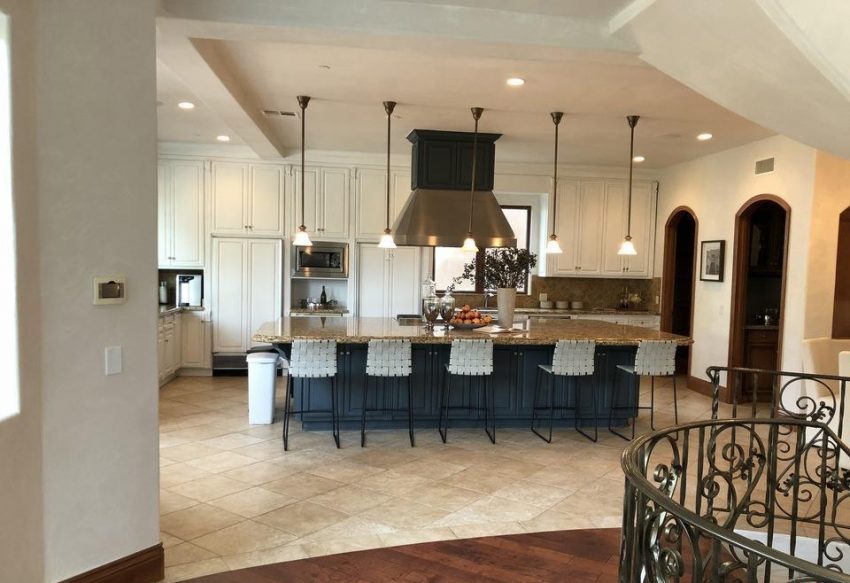 Descrita como sendo do estilo “Mediterrâneo Contemporâneo”, a moradia tem 8603 metros quadrados e três andares ligados por uma escada circular de ferro forjado.