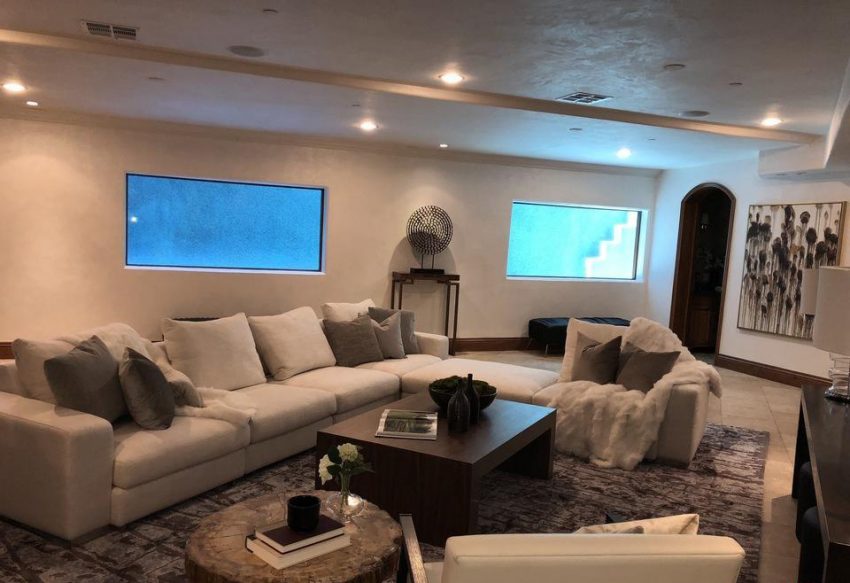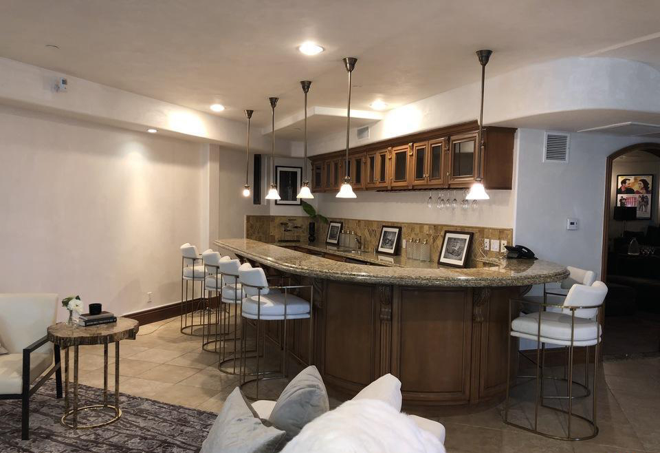 Cada quarto tem a sua própria banheira, a cozinha é enorme, há várias salas de estar, piscina, sala para ver filmes, spa, garagem de dois carros com entrada direta para a moradia e área externa.