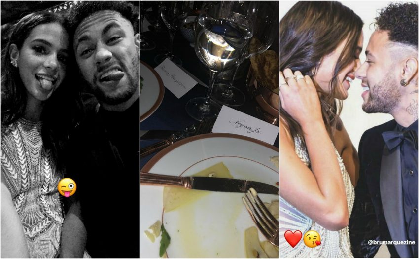 Neymar, que chegou de muletas por ainda estar a recuperar da cirurgia que fez à perna direita, fez-se acompanhar pela namorada. Bruna Marquezine estava com um vestido/jumpsuit branco Versace que brilhava por si só.