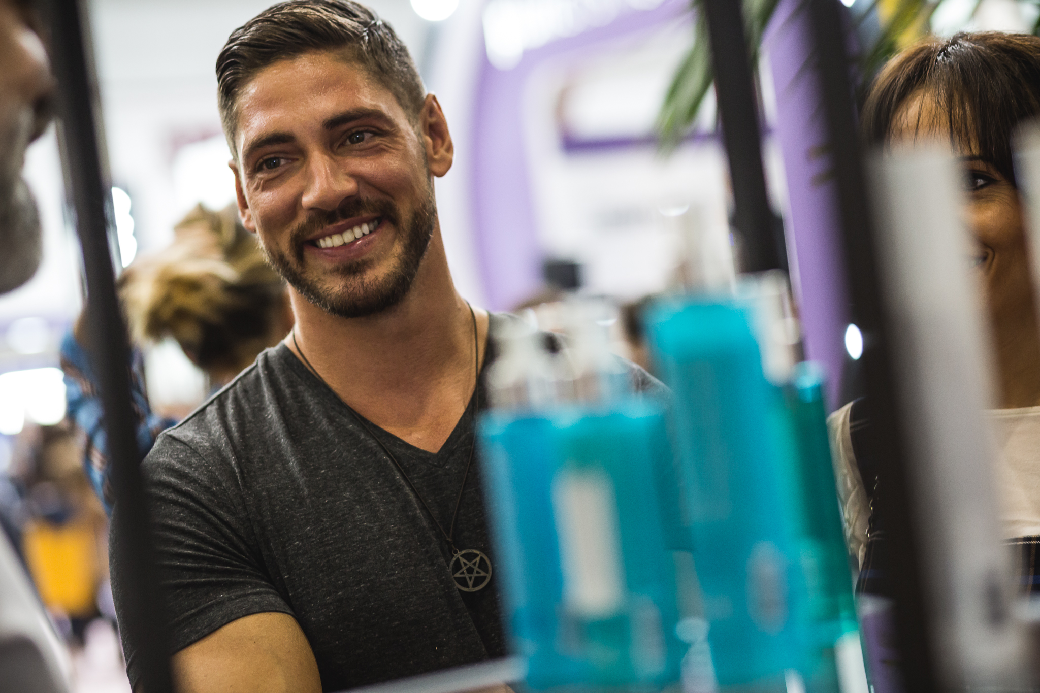 Depois de uma longa temporada fora do país, Ângelo Rodrigues não perdeu a oportunidade de ficar a par das últimas tendências de cosmética para homem, uma área em crescente na Expocosmética.