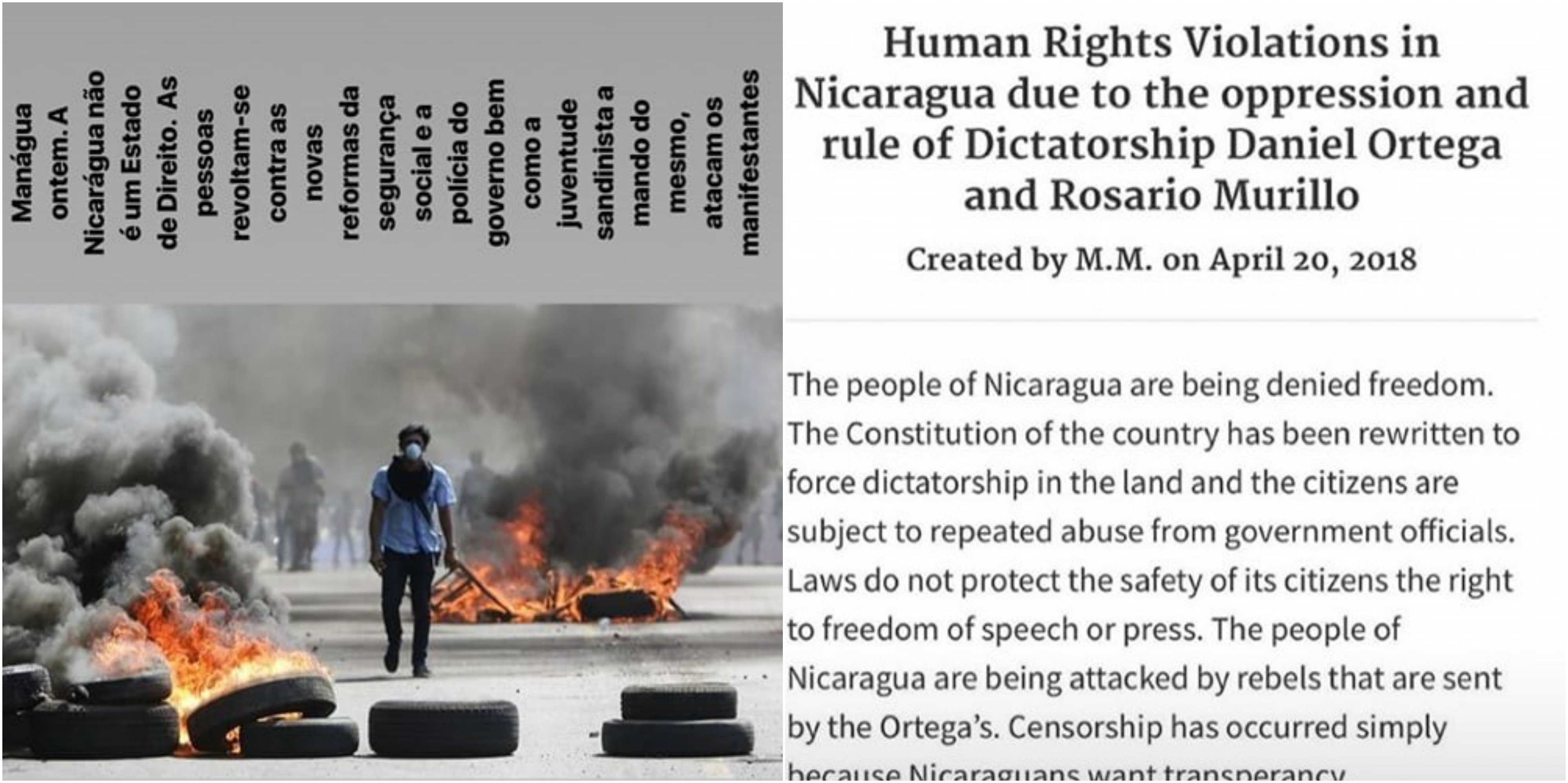 Através de texto e imagem, Dalila garantiu este sábado: “Manágua ontem. A Nicarágua não é um Estado de Direito. As pessoas revoltam-se contra as novas reformas da segurança social e a polícia do governo bem como a juventude sandinista a mando do mesmo, atacam os manifestantes”.