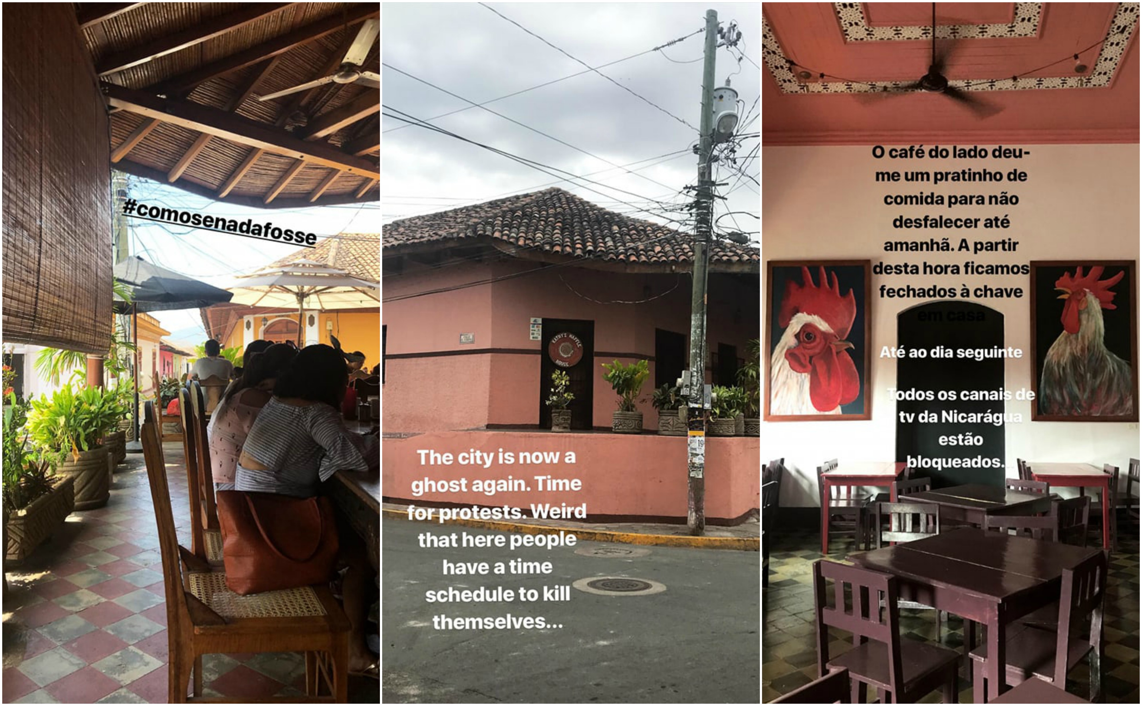 As férias não têm sido fáceis, como se percebe. “O café do lado deu-me um pratinho de comida para não desfalecer até amanhã. A partir desta hora ficamos fechados à chave. Até ao dia seguinte. Todos os canais de tv da Nicarágua estão bloqueados.”