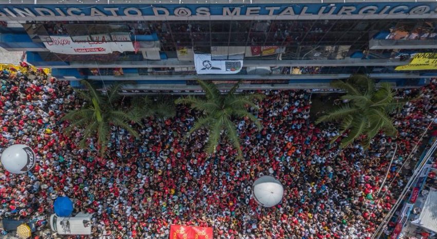 O palanque foi instalado em frente ao Sindicato dos Metalúrgicos do ABC, em São Bernardo do Campo, e foi ali que o antigo presidente brasileiro se despediu do povo e do clero antes de se entregar à polícia.