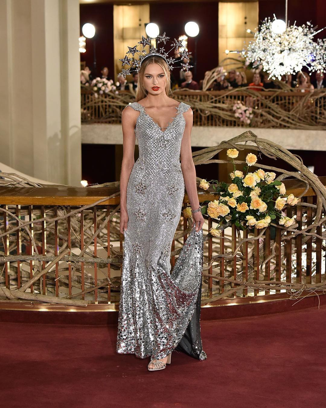 A maquilhagem, o penteado e os acessórios de inspiração barroca que compõe a coleção da Dolce & Gabbana deram o remate perfeito numa imagem que causou impacto e que fez com que a “angel” da Victoria’s Secret brilhasse entre estrelas internacionais, como Naomi Campbell, Ashley Graham, Karlie Kloss ou Joan Smalls.