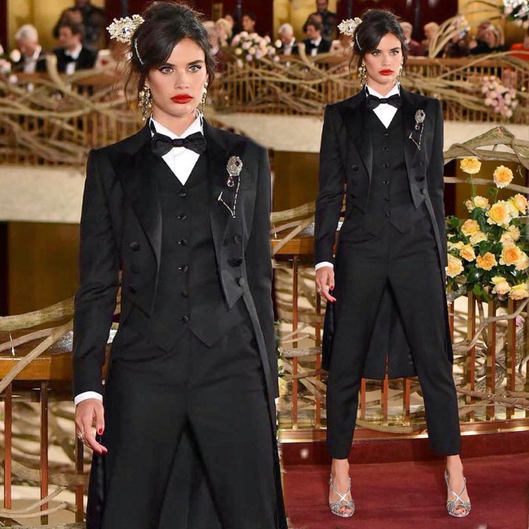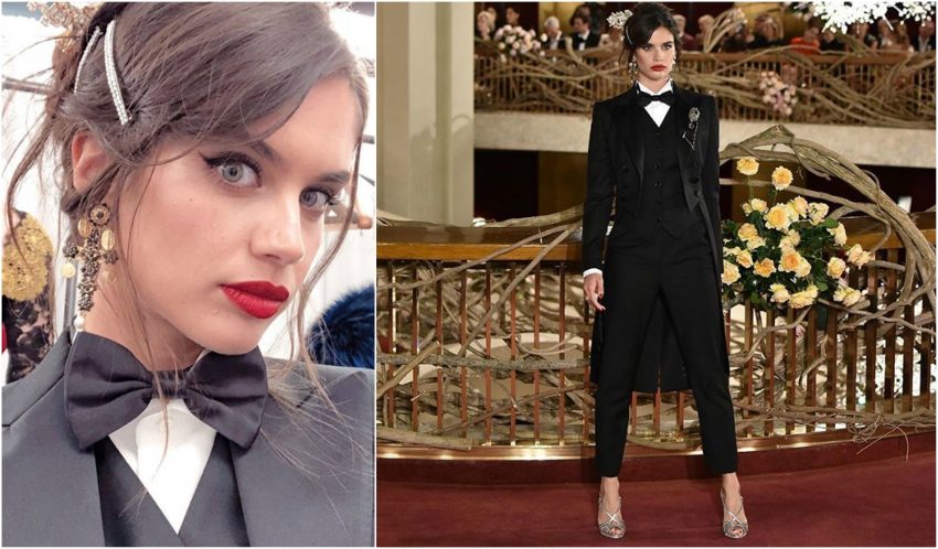 Sara Sampaio vestiu um fraque inspirado no vestuário masculino, mas cintado e combinado com umas sandálias de salto bem alto, numa fusão perfeita entre arrojo e sensualidade.