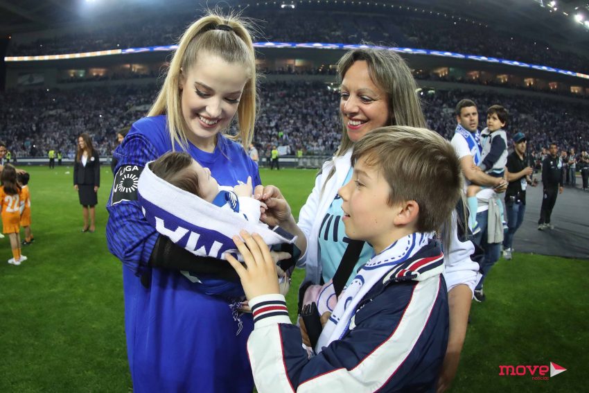 Maria Leonor faz dois meses no próximo dia 17, mas também esteve na festa do FC Porto e equipada a rigor. Ao colo do pai, o guarda-redes José Sá, ou da mãe, a atriz Raquel Jacob, a menina foi mesmo uma das estrelas nas fotos de família que se seguiram à entrega da taça.