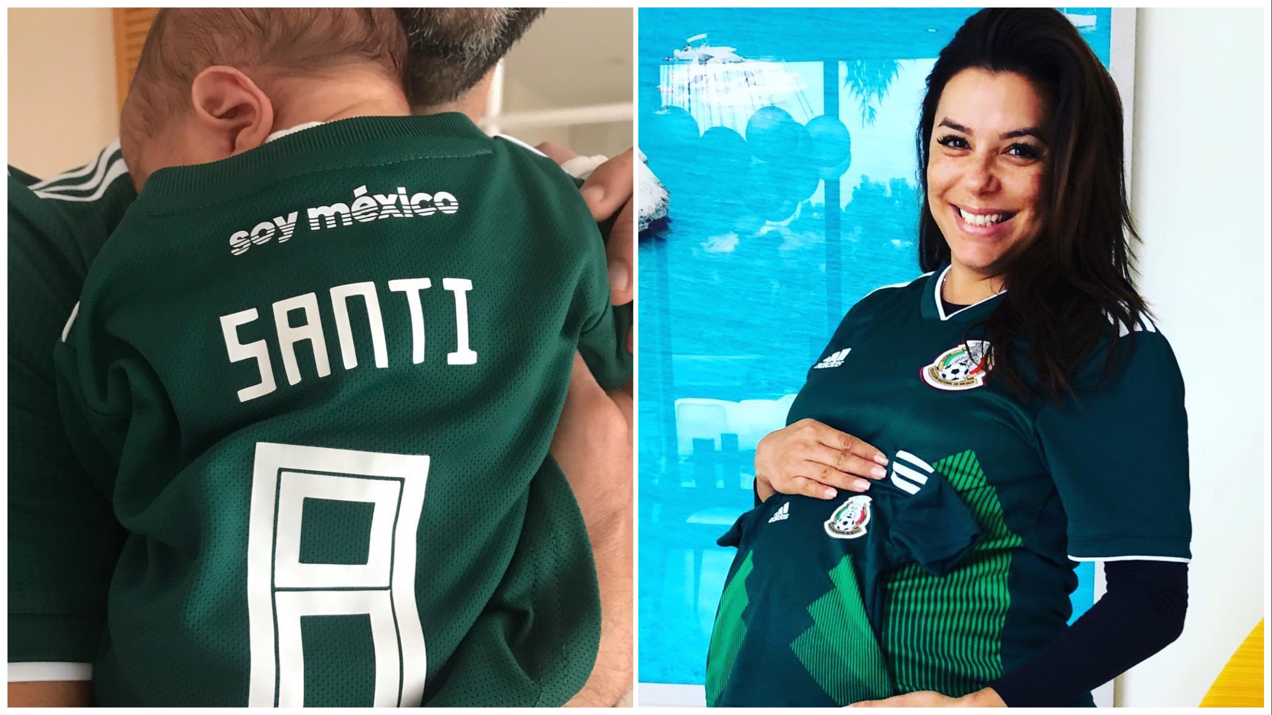 “Olhem quem está pronto para o jogo do México”. Foi assim que a atriz mostrou Santiago Enrique, o primeiro filho nascido na passada terça-feira, dia 19, equipado já com uma camisola da seleção tricolor.