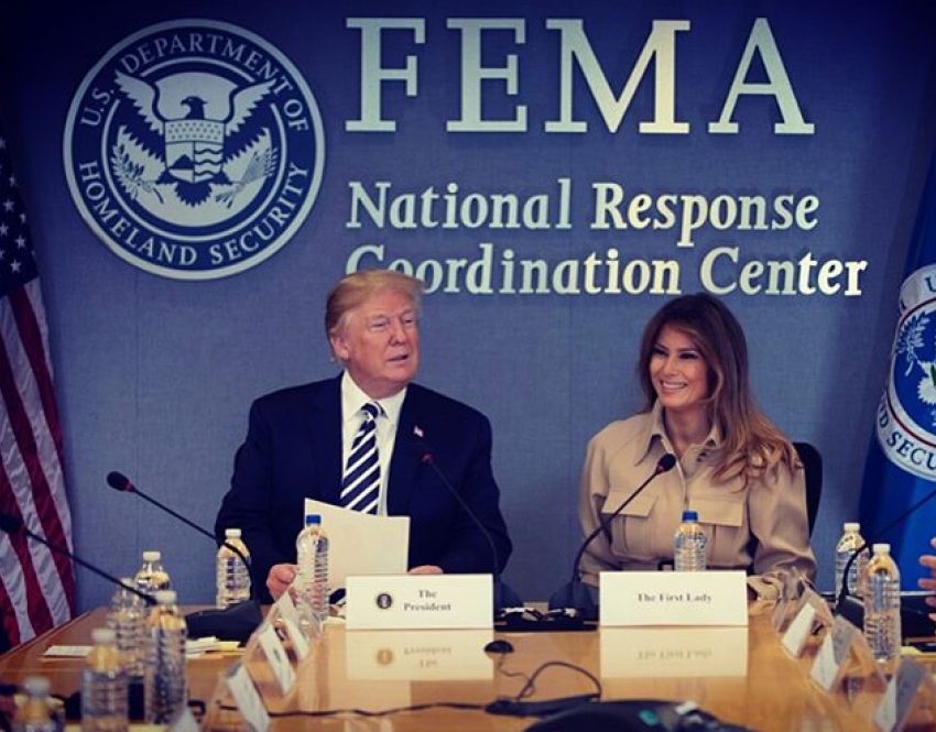 Esta quarta-feira, Melania Trump marcou presença, ao lado do marido, o presidente norte-americano Donald Trump, na sessão informativa – por causa da temporada de furacões – na sede da Agência Federal de Administração de Emergências (FEMA) em Washington D.C.