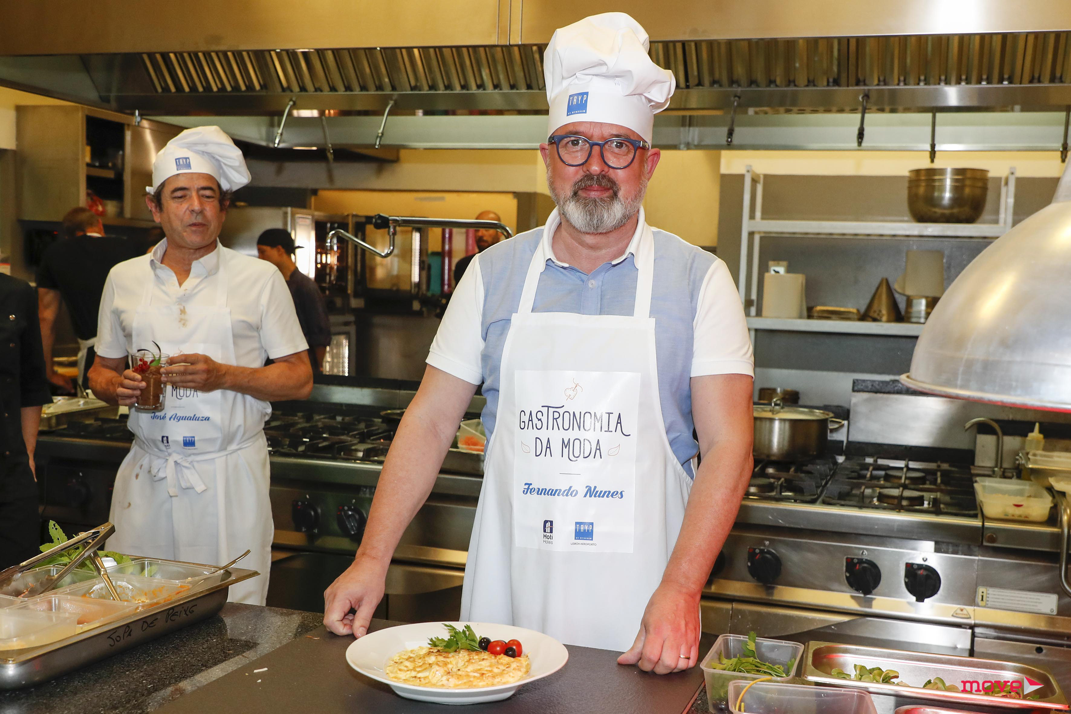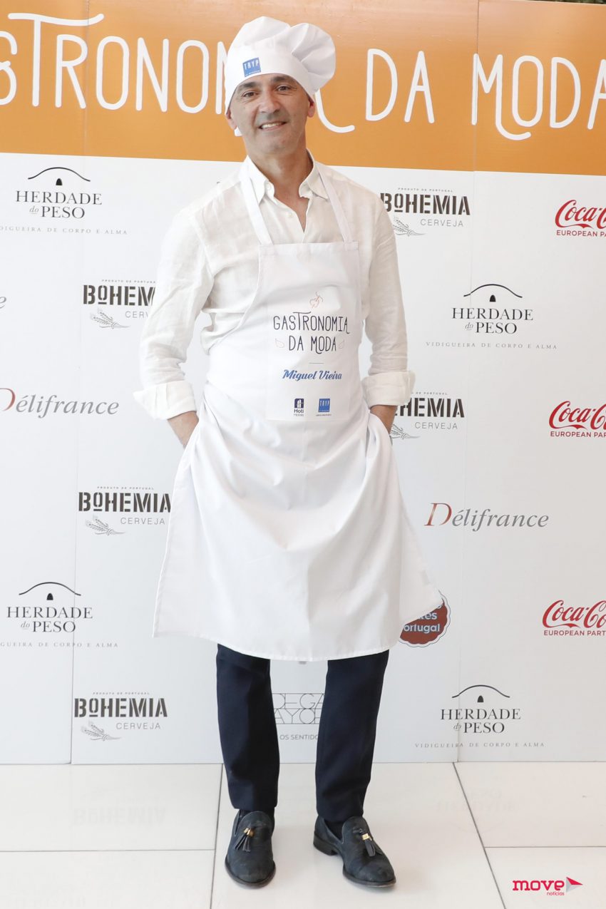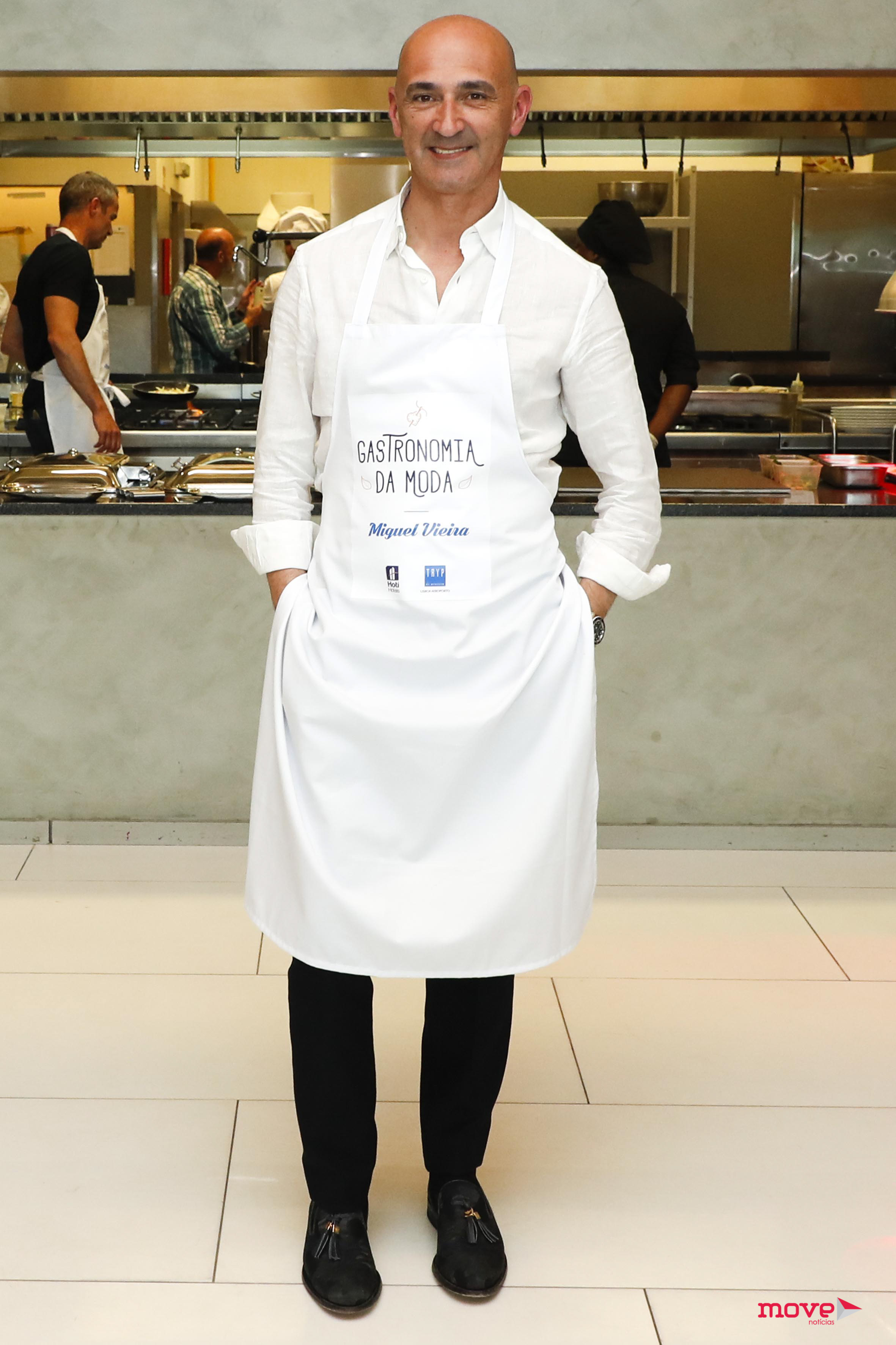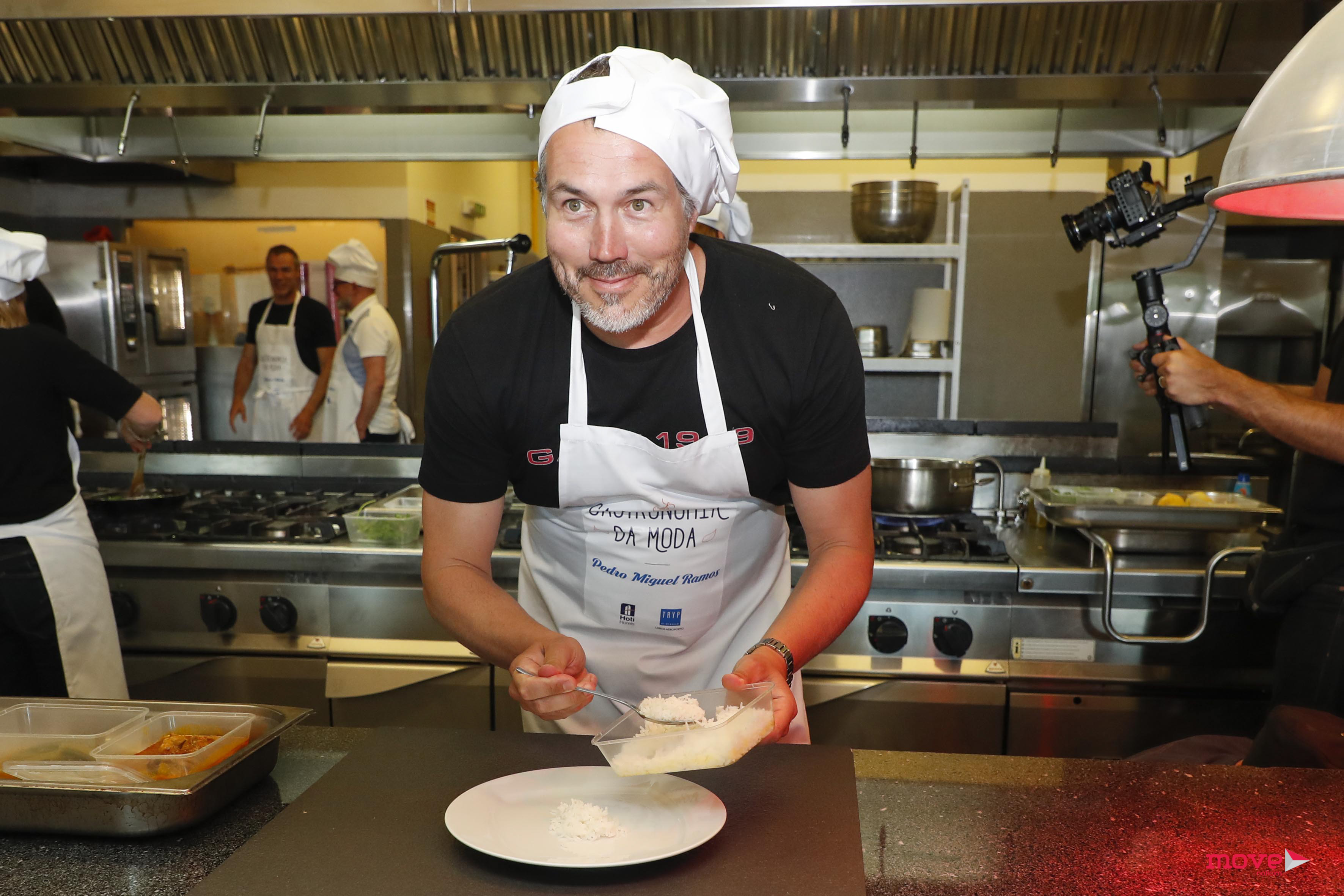 Miguel Vieira confecionou um robalo no forno com batata, pimento, groselha e hortelã, assumindo que é muito mais fácil criar vestidos do que cozinhar. O estilista sanjoanense que prepara a apresentação da sua coleção, no próximo fim-de-semana, na Milão Fashion Week, viajou propositadamente para estar presente. “Achei que era muito importante vir cá e fazer parte de uma fotografia que fiz há vinte anos. Tive sorte de fazer parte desse registo”, frisou.