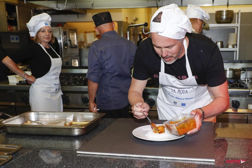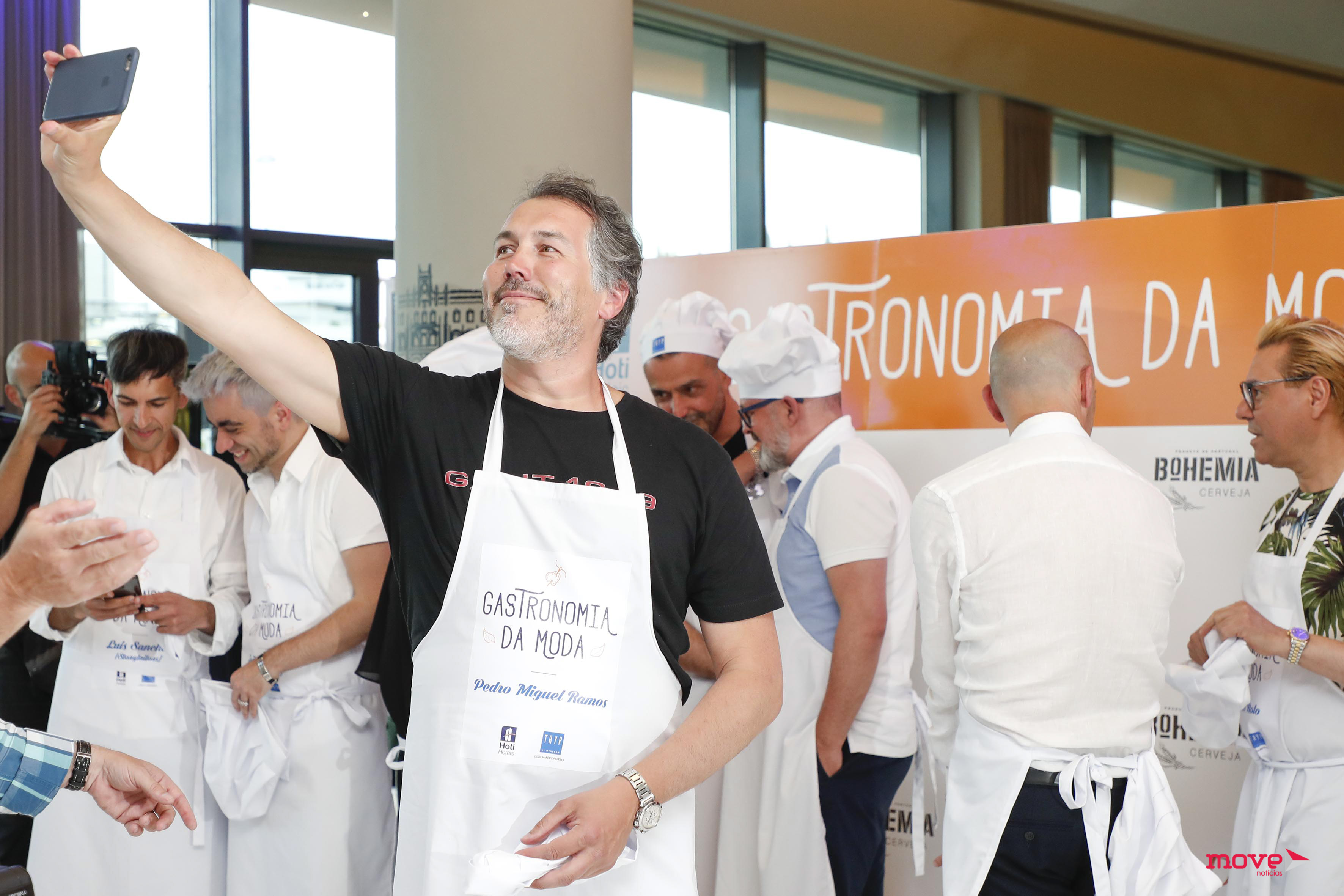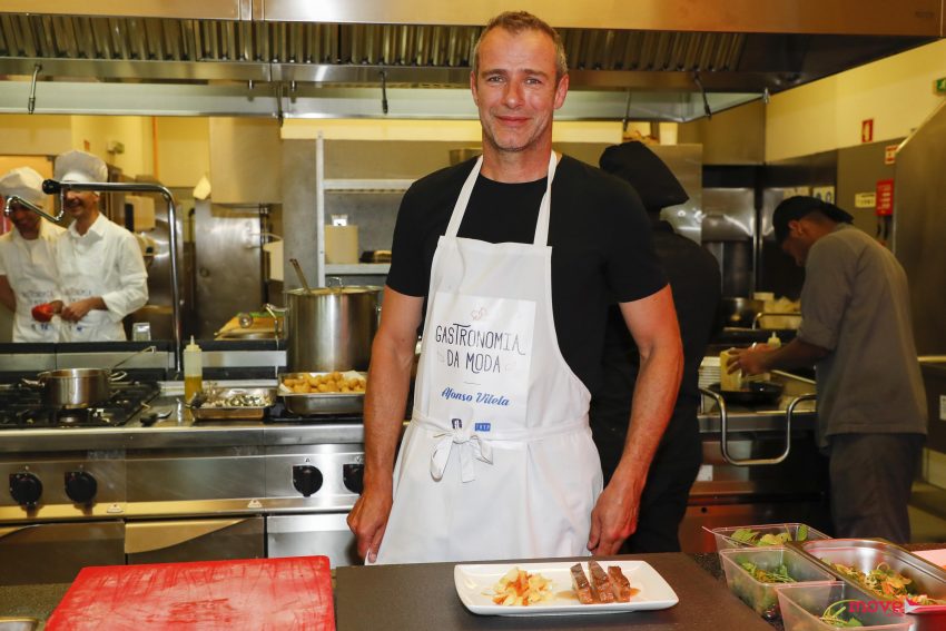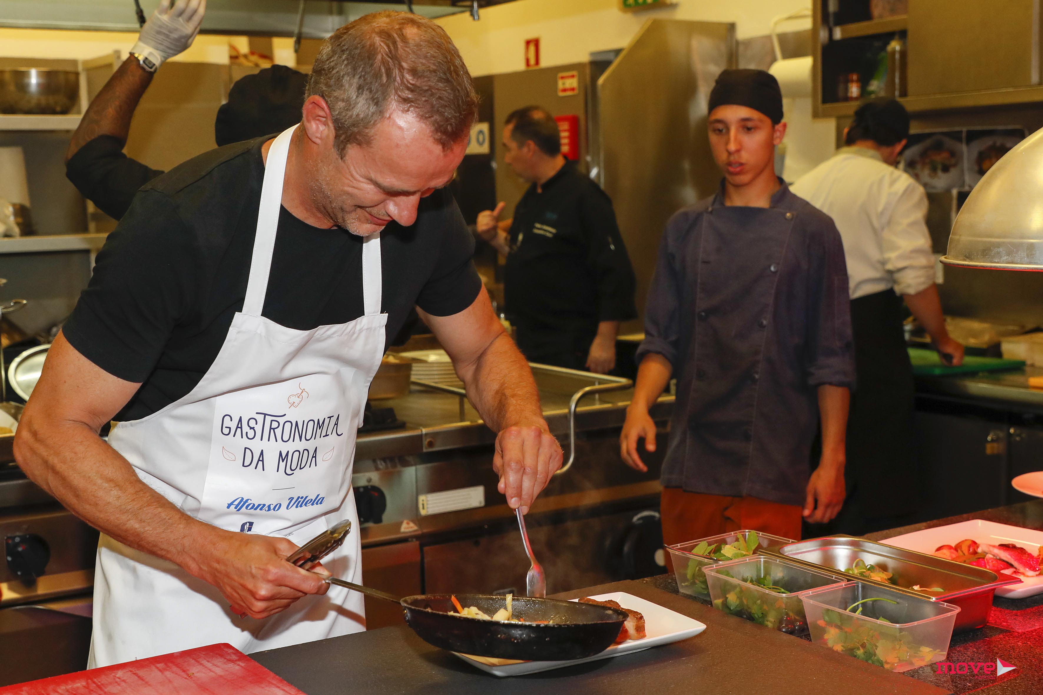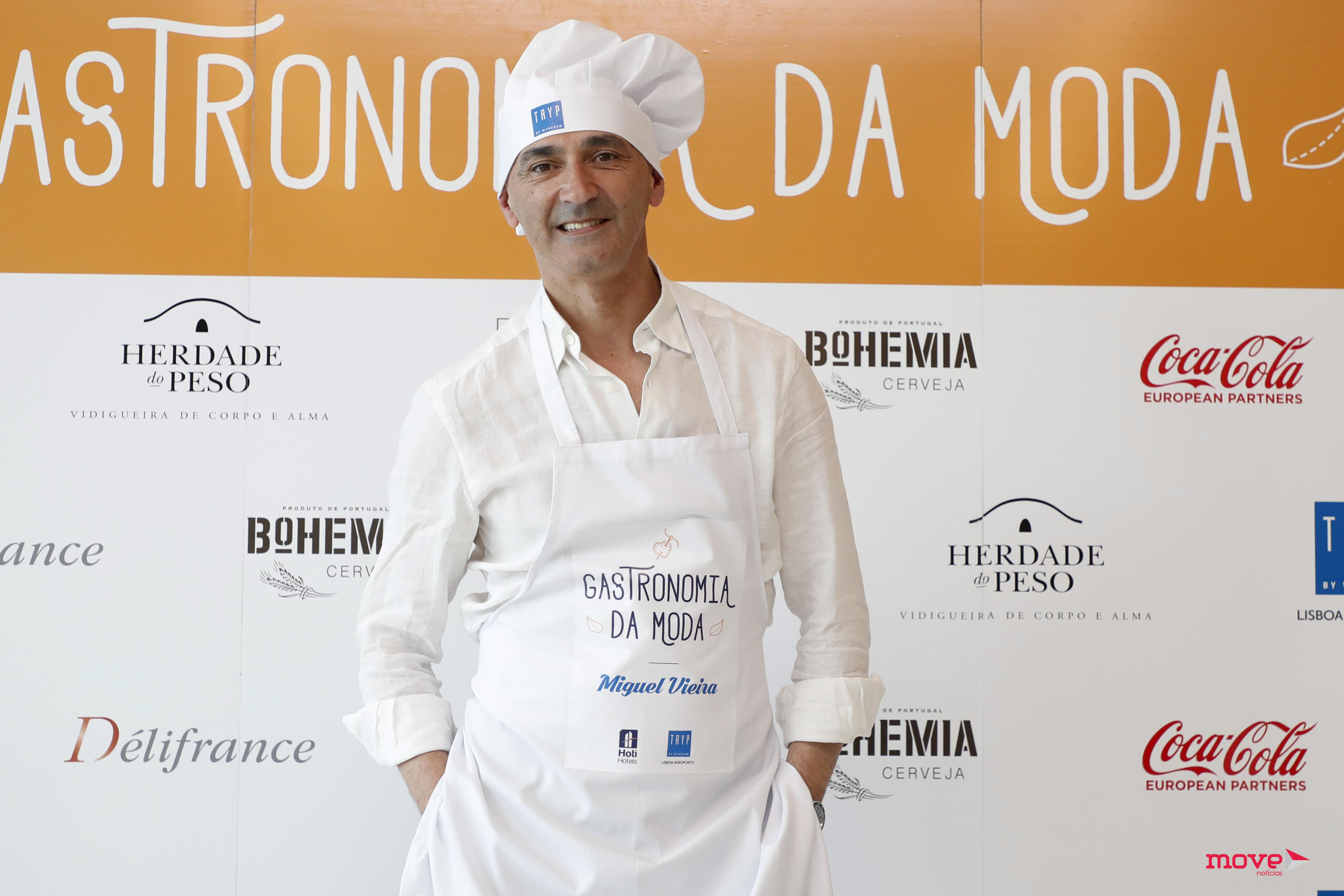 Miguel Vieira confecionou um robalo no forno com batata, pimento, groselha e hortelã, assumindo que é muito mais fácil criar vestidos do que cozinhar. O estilista sanjoanense que prepara a apresentação da sua coleção, no próximo fim-de-semana, na Milão Fashion Week, viajou propositadamente para estar presente. “Achei que era muito importante vir cá e fazer parte de uma fotografia que fiz há vinte anos. Tive sorte de fazer parte desse registo”, frisou.