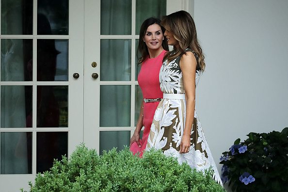 Há muito se falava no encontro entre a rainha e a primeira dama. Ambas tidas como verdadeiros ícones de beleza, Letizia e Melania primam pela elegância e pelo bom gosto e desta vez não foi diferente. Fiel ao seu estilo, a mulher de Filipe VI foi pouco original e elegeu um vestido justo da Michael Kors, em rosa, enaltecendo a silhueta com um cinto prateado.