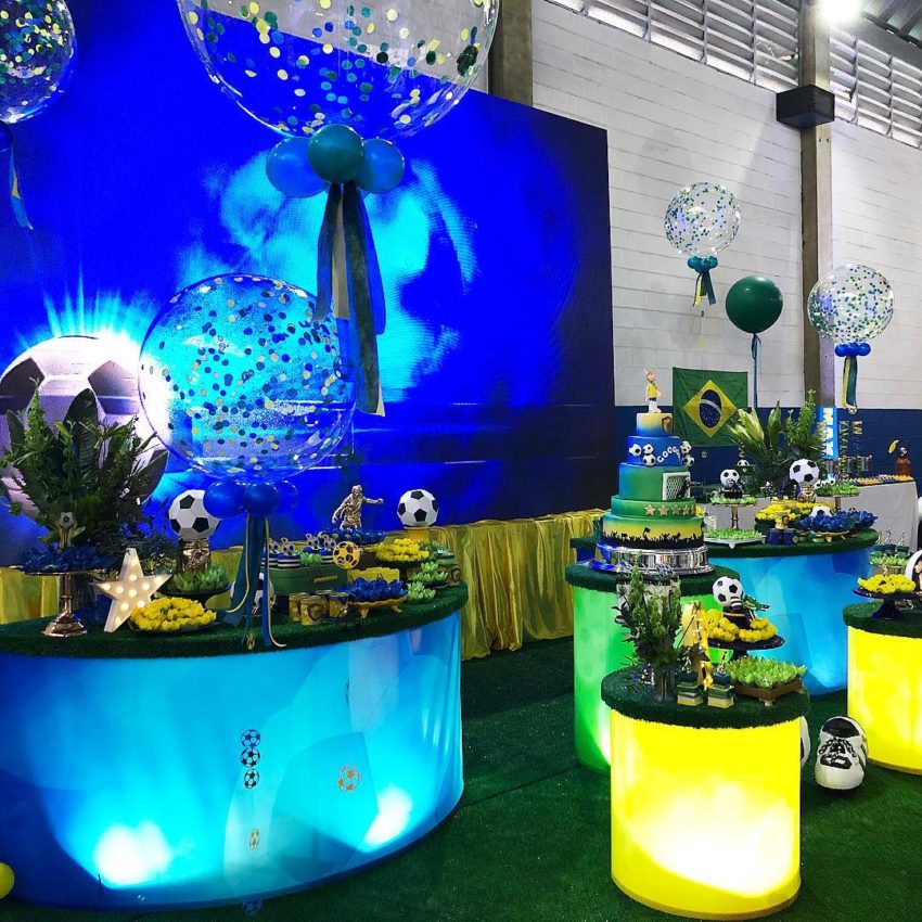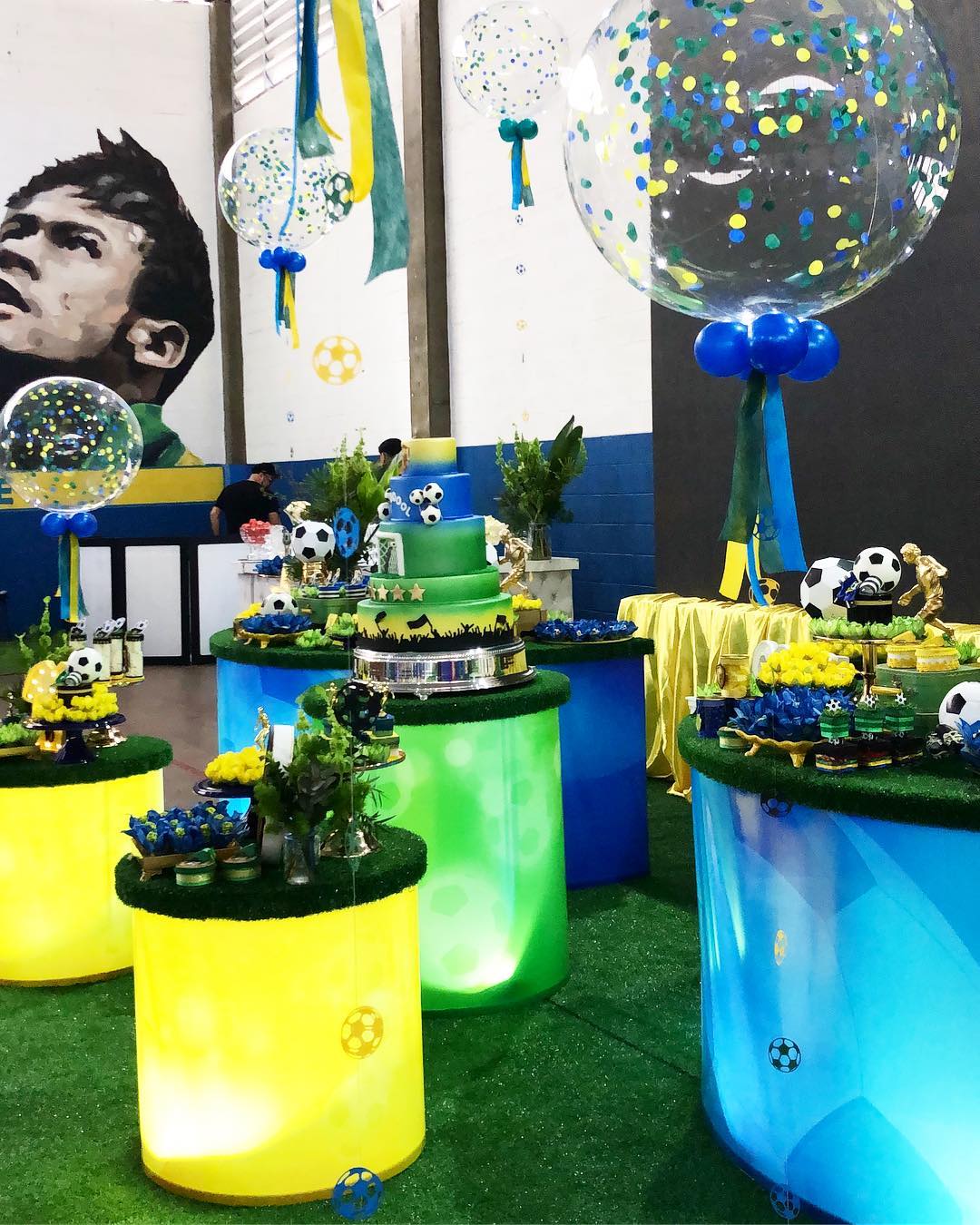 Muito em breve, Neymar terá que se apresentar ao serviço do Paris Saint-Germain e não poderá estar com o herdeiro no seu verdadeiro dia de aniversário por isso, sem olhar a superstições, houve bolo, balões, muita doçaria, e divertimentos, num cenário decorado a verde e amarelo.