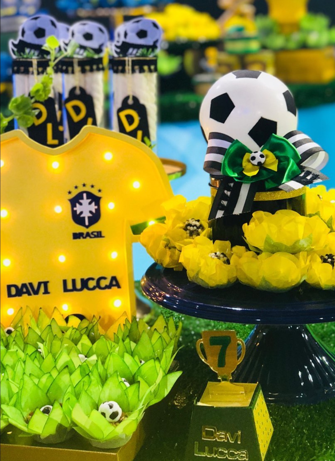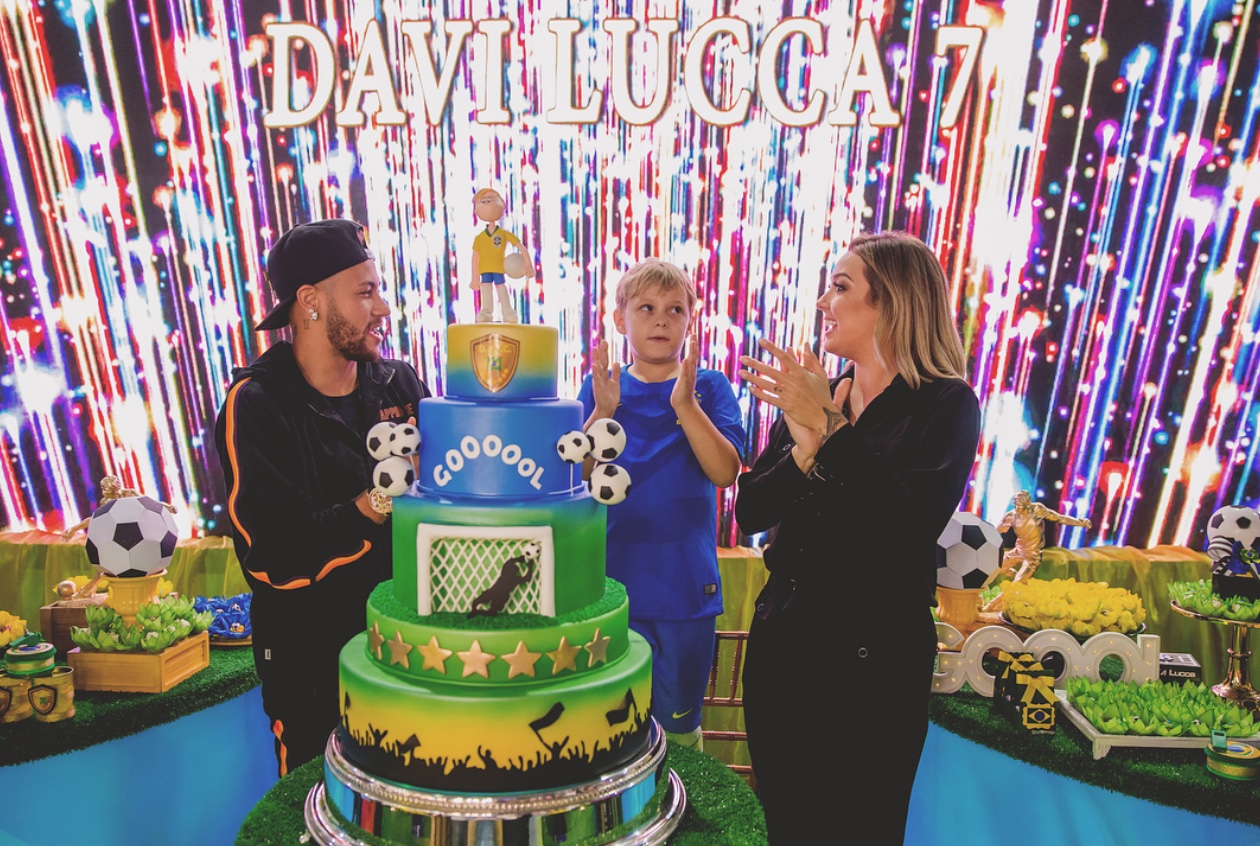 David Lucca só faz 7 anos a 24 de agosto, mas por querer ter o pai por perto, antecipou a festa para o passado domingo. Dessa forma, teve não só Neymar como a namorada deste, Bruna Marquezine, num evento inspirado na seleção do Brasil e muita animação, na sede do Instituto Neymar Jr, em São Paulo, Brasil.