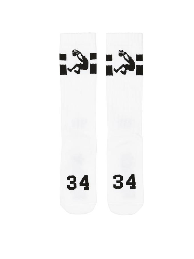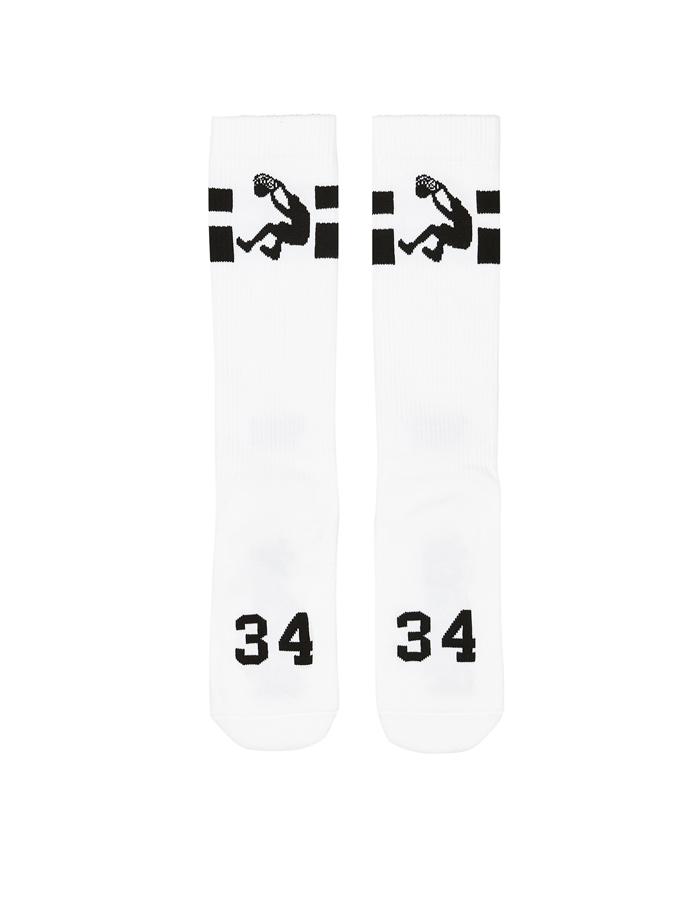 A linha prima sobretudo por básicos em preto e branco, e pormenores em vermelho, com t-shirts, sweatshirts e meias ao estilo basquetebolista – até porque inspirou-se em Shaquille O’Neil -, e o mais curioso é que serve os dois sexos.