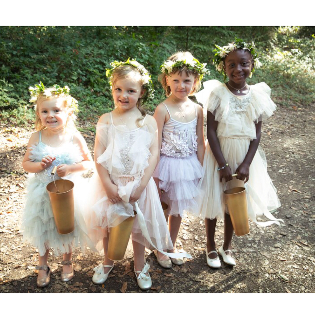 O segundo vestido, usado durante uma coreografia de sapateado que o casal fez para os convidados, era da Dior, da autoria de Maria Grazia Chiuri. Os sapatos – tanto as sandálias usadas durante a cerimónia, como o par feito especialmente para a dança – eram Christian Louboutin. Veja as fotos: