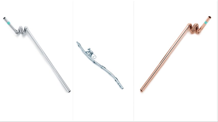 O luxo chega com a chancela da Tiffany & Co que lançou palhinhas em prata esterlina banhada em ouro rosa. Ainda em prata esterlina, a Stephen Webster oferece a gravação com o nome do dono.