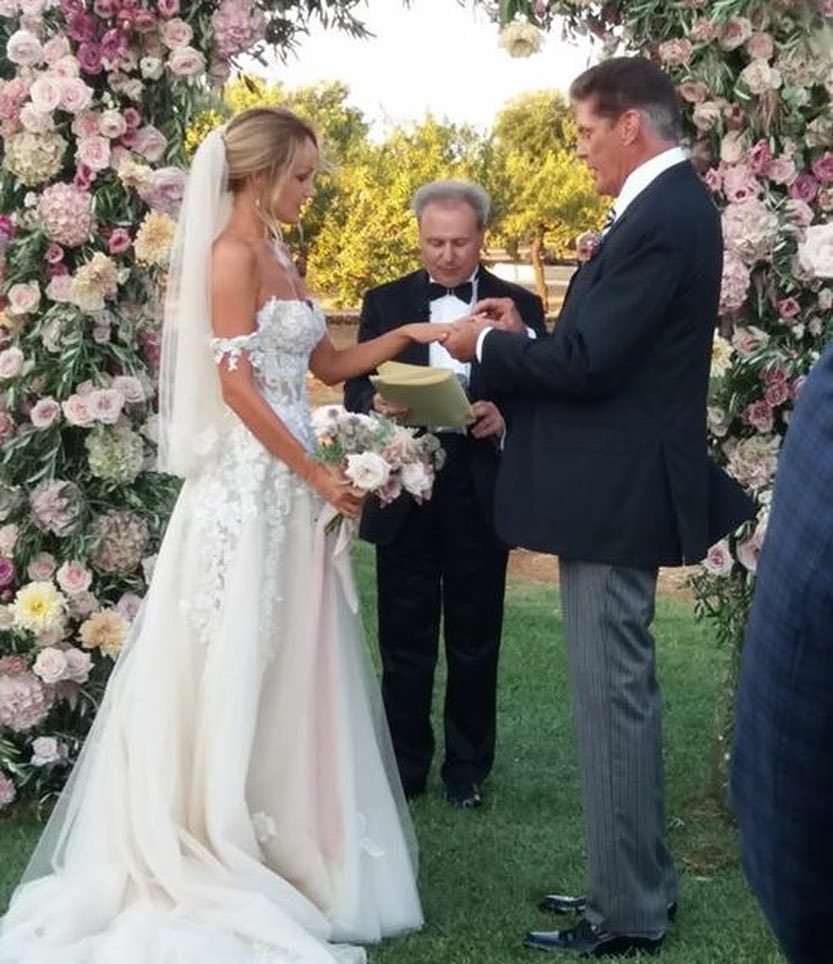 David – que já foi casado duas vezes – deu um papel de destaque às filhas Taylor Ann, de 28 anos, e Hayley, 25, nesse dia especial. As duas jovens foram as responsáveis por entregar as alianças.