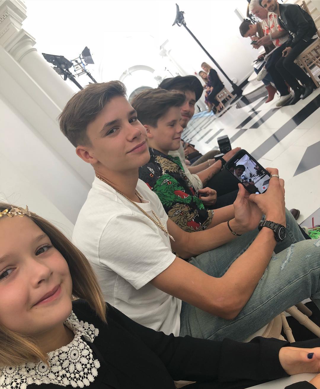Um momento de orgulho para a designer e a sua família. A prole Beckham, David, Brooklyn, Cruz e Harper, juntou-se na primeira fila para apoiar a ex- Spice Girl, que escolheu uma galeria em Dover Street para a ocasião.