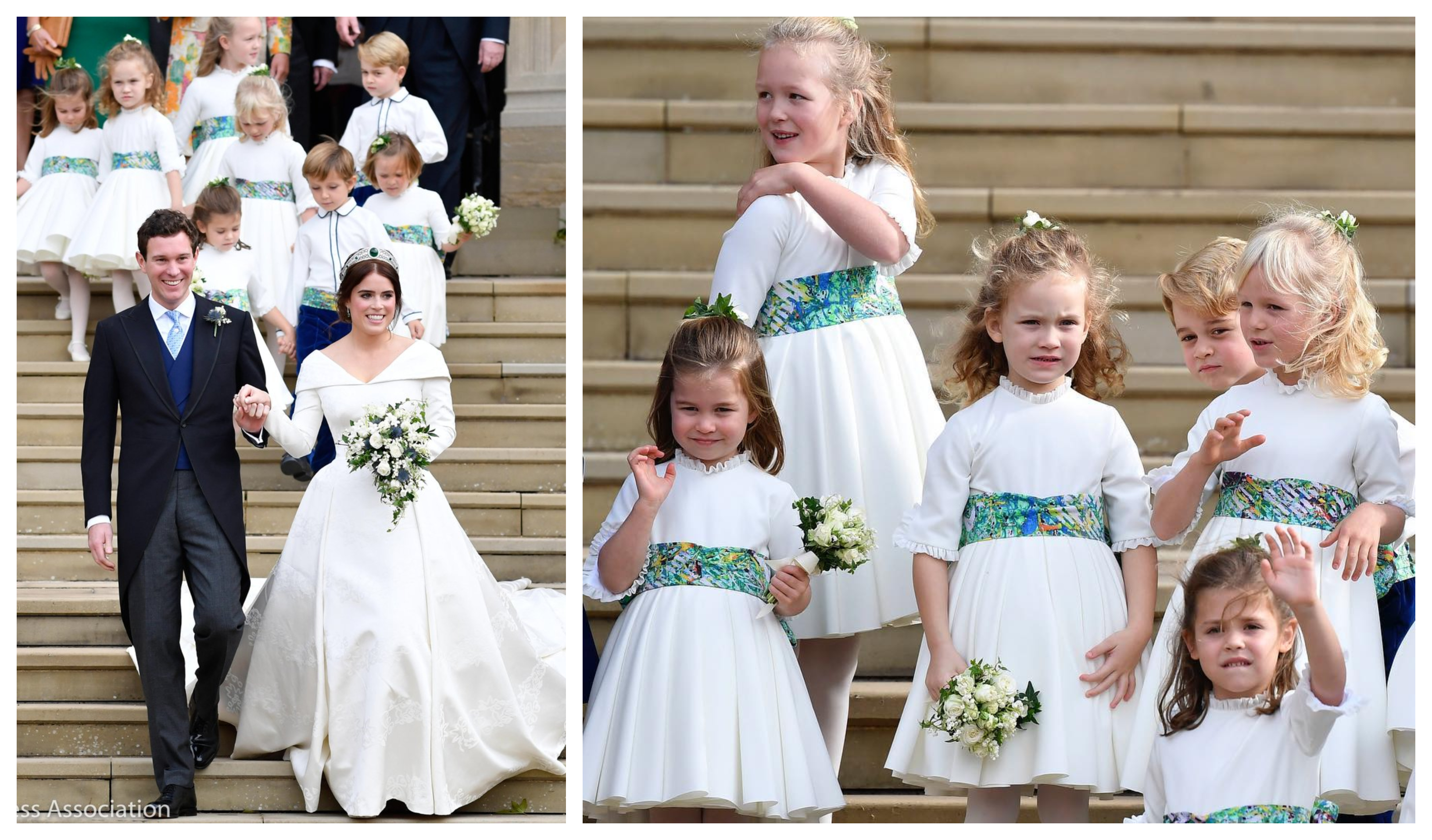 Eugenie York e Jack Brooksbank casaram esta-sexta-feira, 12 de outubro, na Saint George’s Chapel St, no Castelo de Windsor. E os filhos dos duques de Cambridge tiveram um papel de destaque, como dama de honor e pajem, ao lado de Savannah e Isla Phillips, Mia Tindall, Maud Windsor, Theodora Williams e Louis de Givenchy.