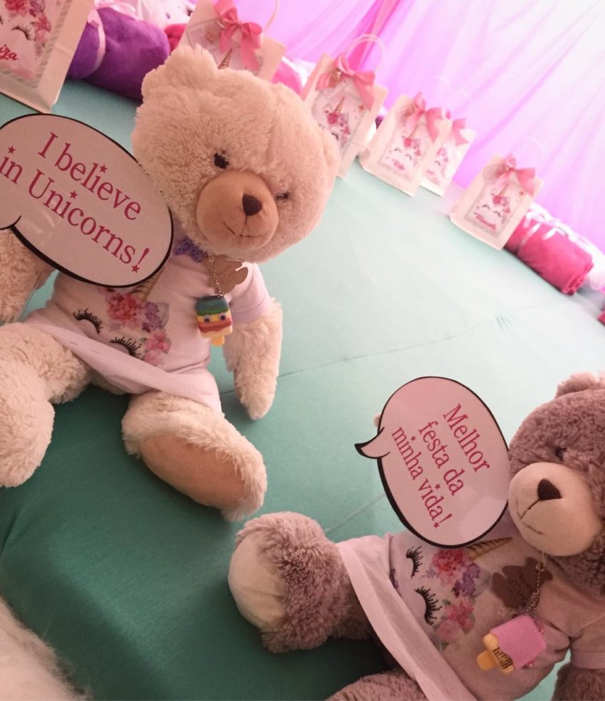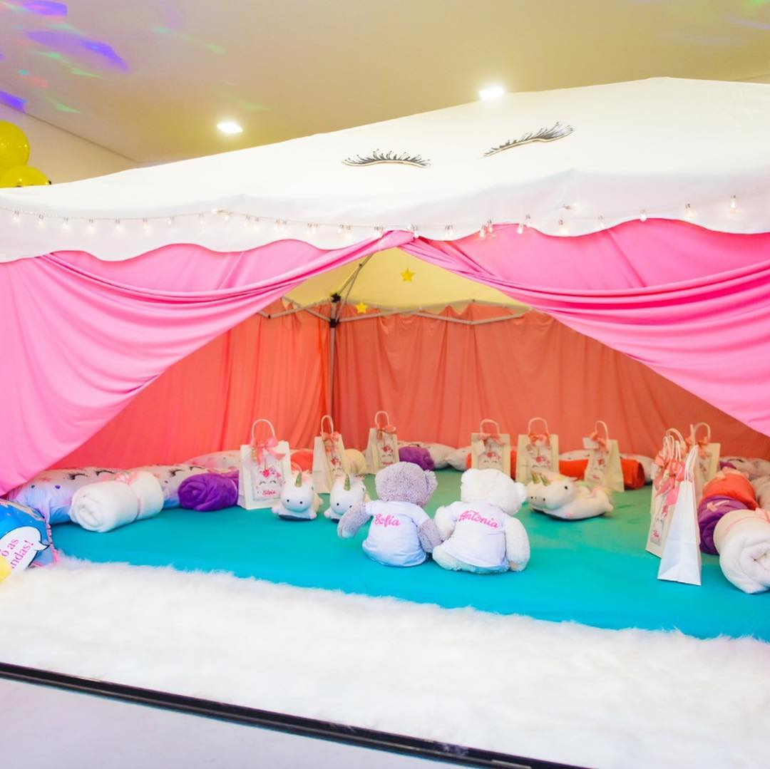 Os convidados puderam usufruir de uma noite do pijama dentro de uma tenda, e ainda tiveram direito a maquilhagem e spray de diversas cores para os cabelos, além de outros mimos.