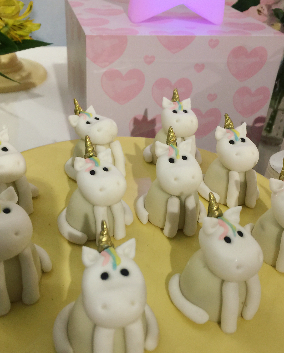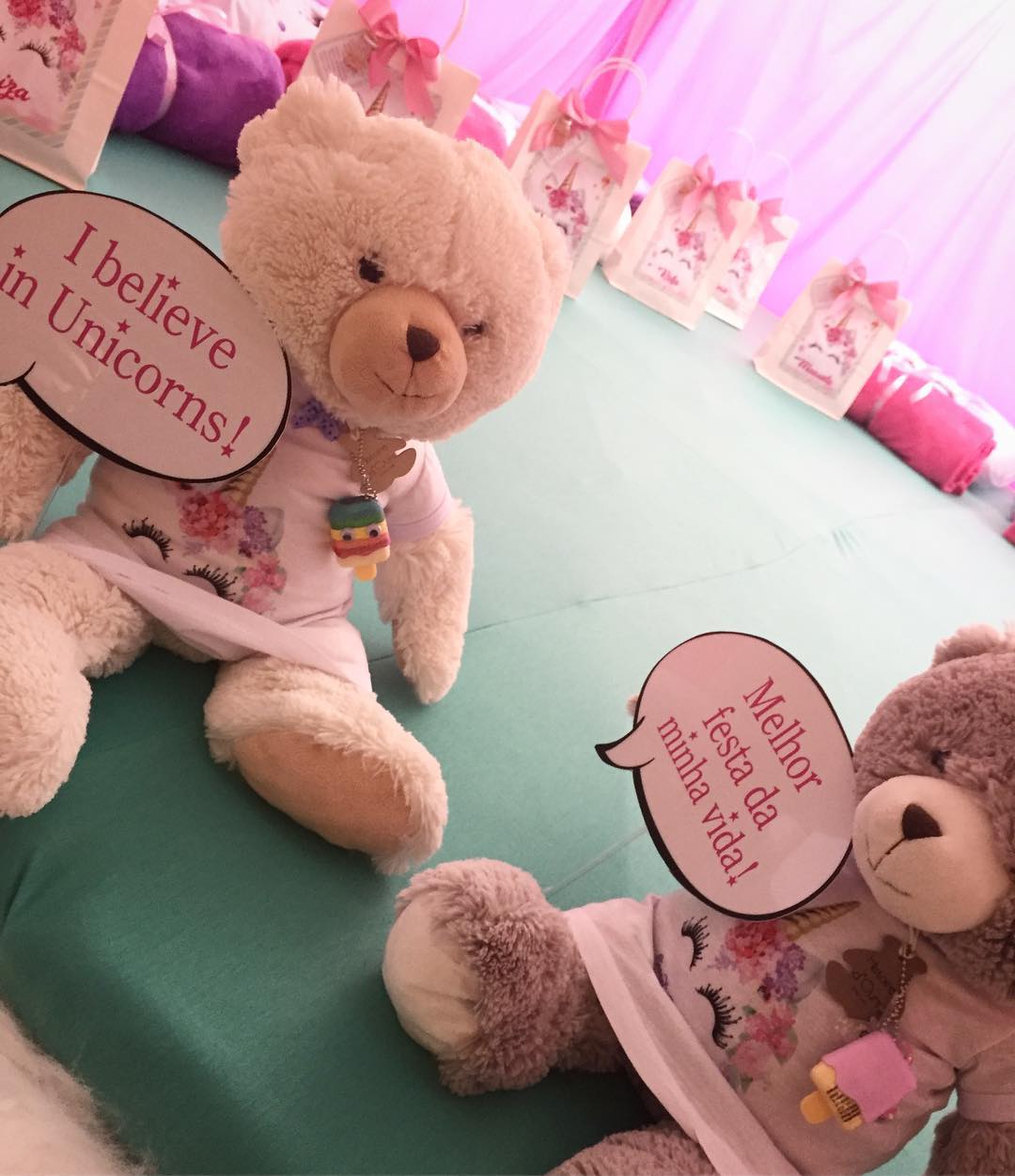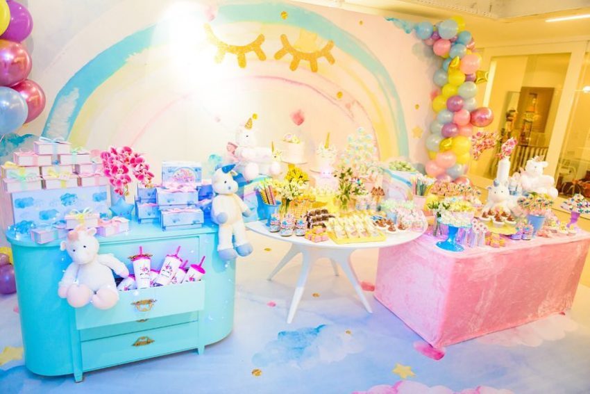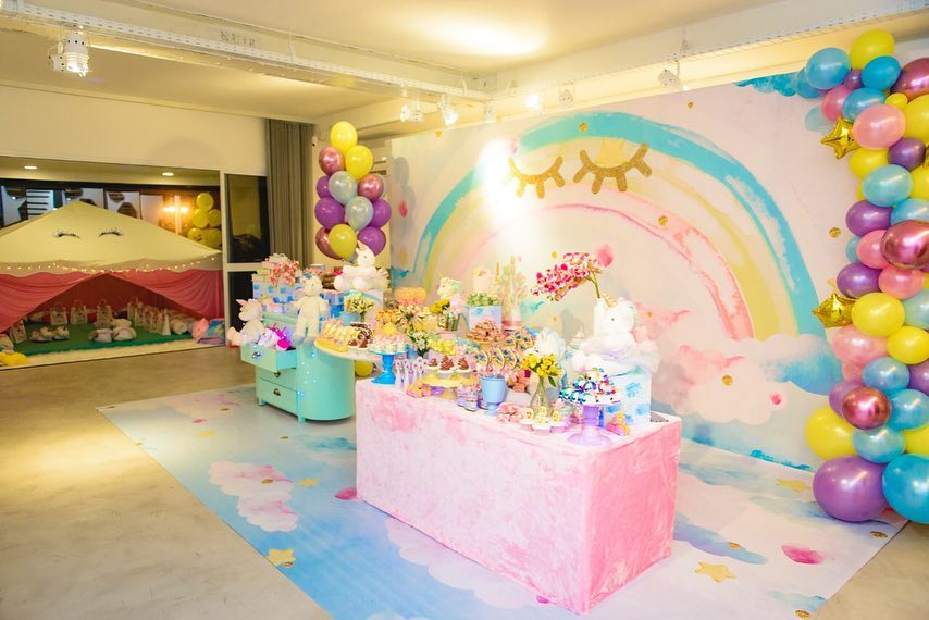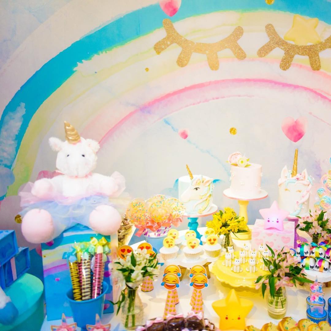 Doces coloridos em forma de unicórnio e um painel com o desenho do arco íris e de nuvens, deram o tema à festa das gémeas. Veja as fotos: