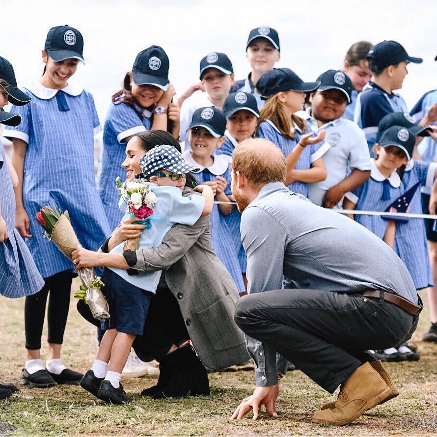 As crianças tiveram mais uma vez destaque na receção ao casal real, oferecendo dezenas de flores. Luke Vincent, de 5 anos, foi o mais desinibido ao dar um forte abraço a Meghan Markl, continuando depois a conversar com Harry enquanto acariciava a barba do príncipe que também teve direito a um apertado abraço. A professora do menino explicou que um dos personagens favoritos da criança é o Pai Natal, que também tem barba, daí a atração pelo rosto do príncipe.