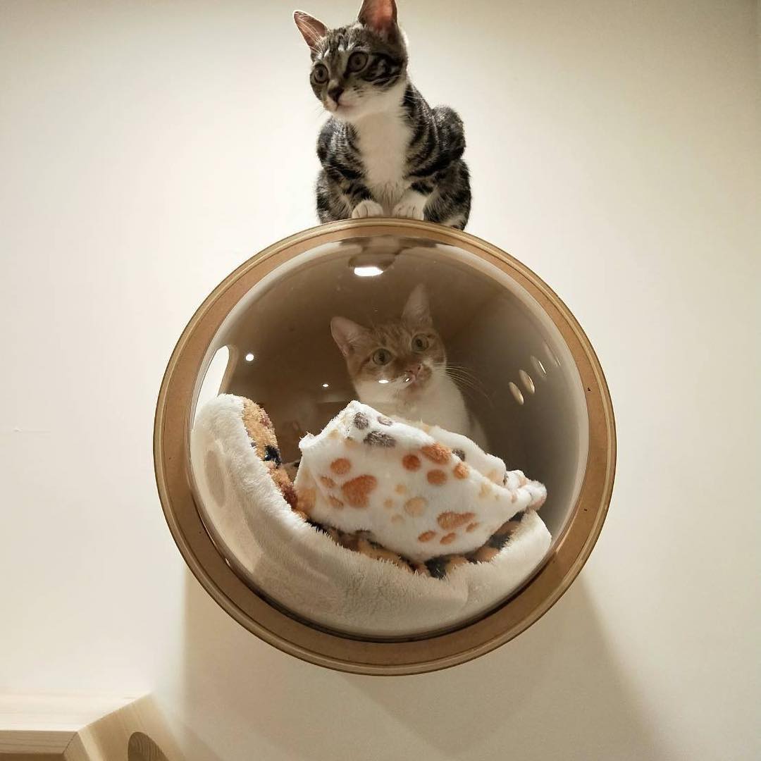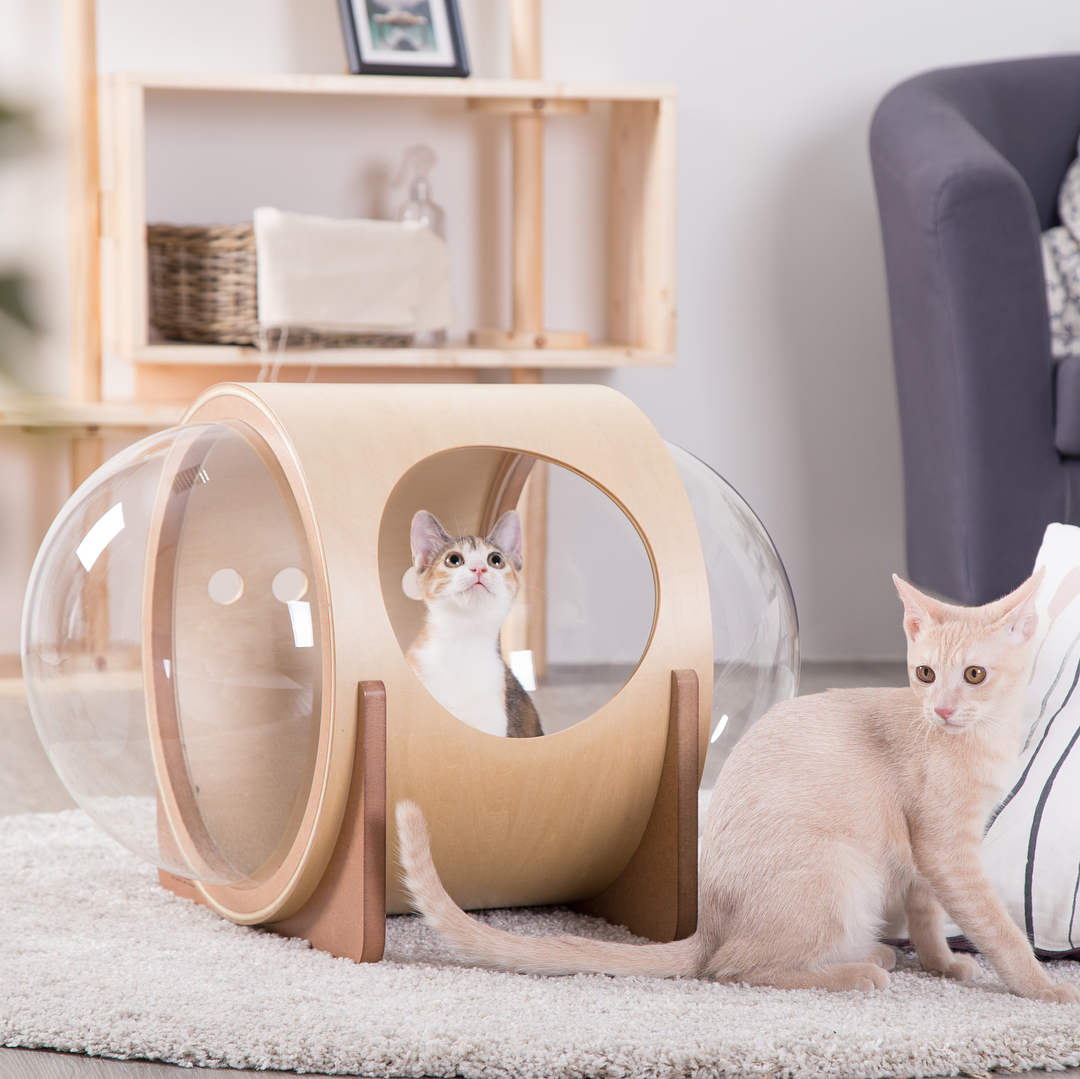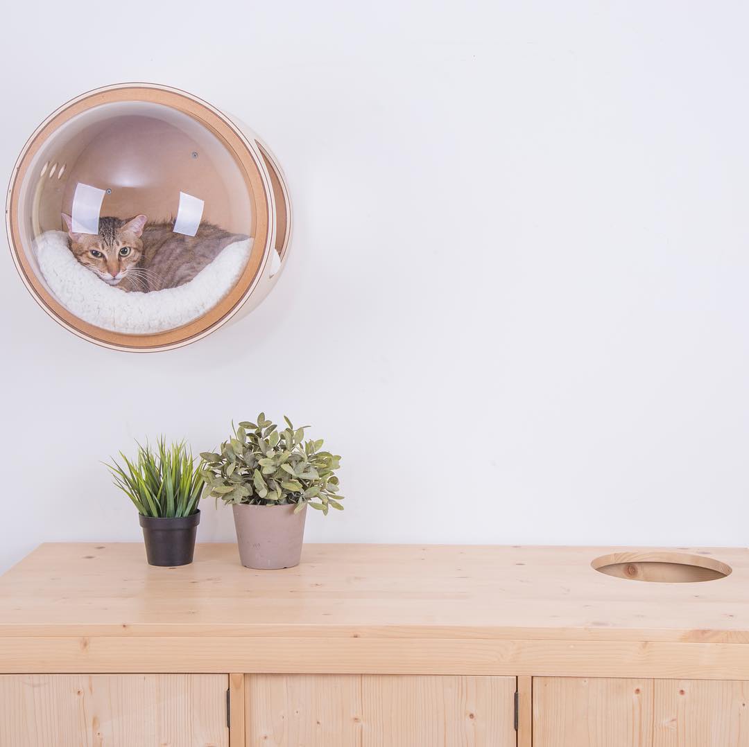 A empresa chinesa My Zoo criou uma linha de camas para gatos, inspiradas em naves espaciais. São três modelos, todos feitos à base de madeira, que fazem qualquer gatinho parecer um astronauta.