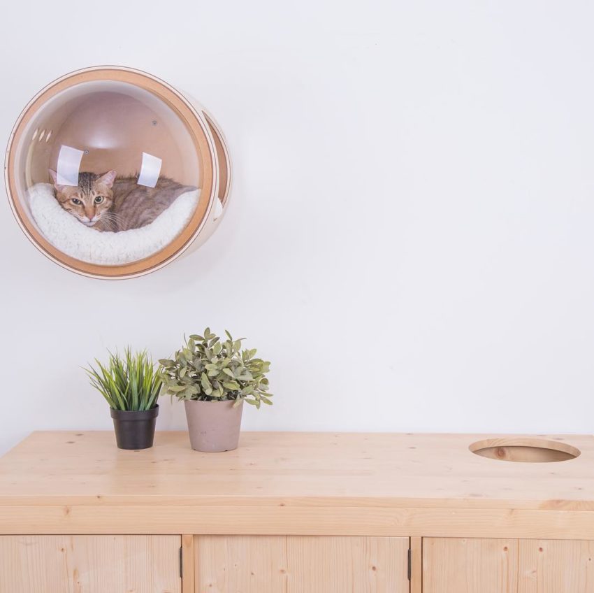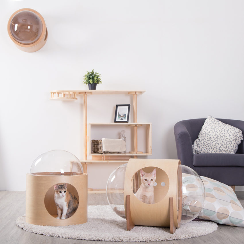 Os modelos Alfa e Beta foram pensados para ficar no chão, enquanto o modelo Gama é projetado para ser colocado na parede e fazer os gatos descansarem ‘no espaço’.